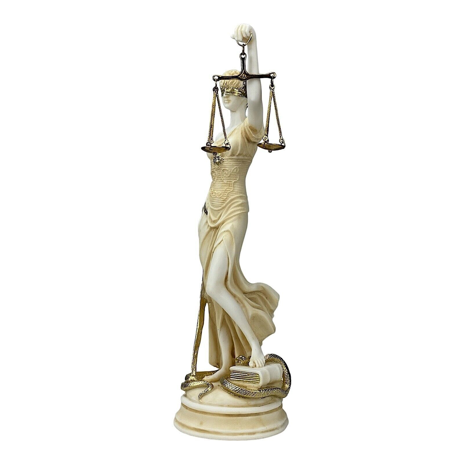 Sculpture statue de la deesse grecque romaine de la justice aveugle de Themis peinte a la main 13,8 po