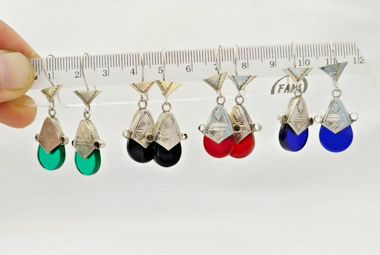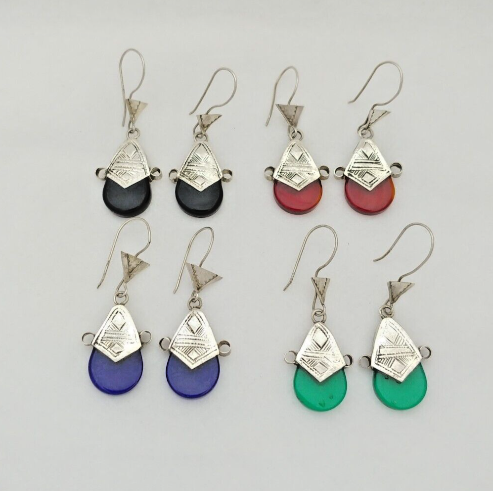 Moroccan Tuareg Earring Silver Agate Stone Jewelry Vintage African Tribal Ethnic