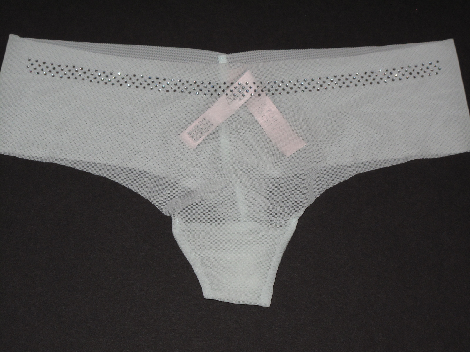 NWT Victoria's Secret Embellished Front Seafoam Green Sheer Thong / String Panty in size S or M. Please feel free to send me a message with any questions before purchase to avoid complications.