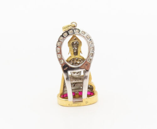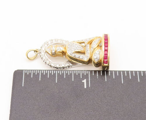 18K GOLD Vintage Pendant Genuine Diamonds & Lab Ruby Meditating Figure GP669