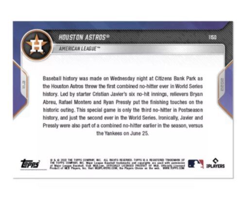 Houston Astros - 2022 TOPPS NOW MLB No Hitter* World Series Champions Card #1150