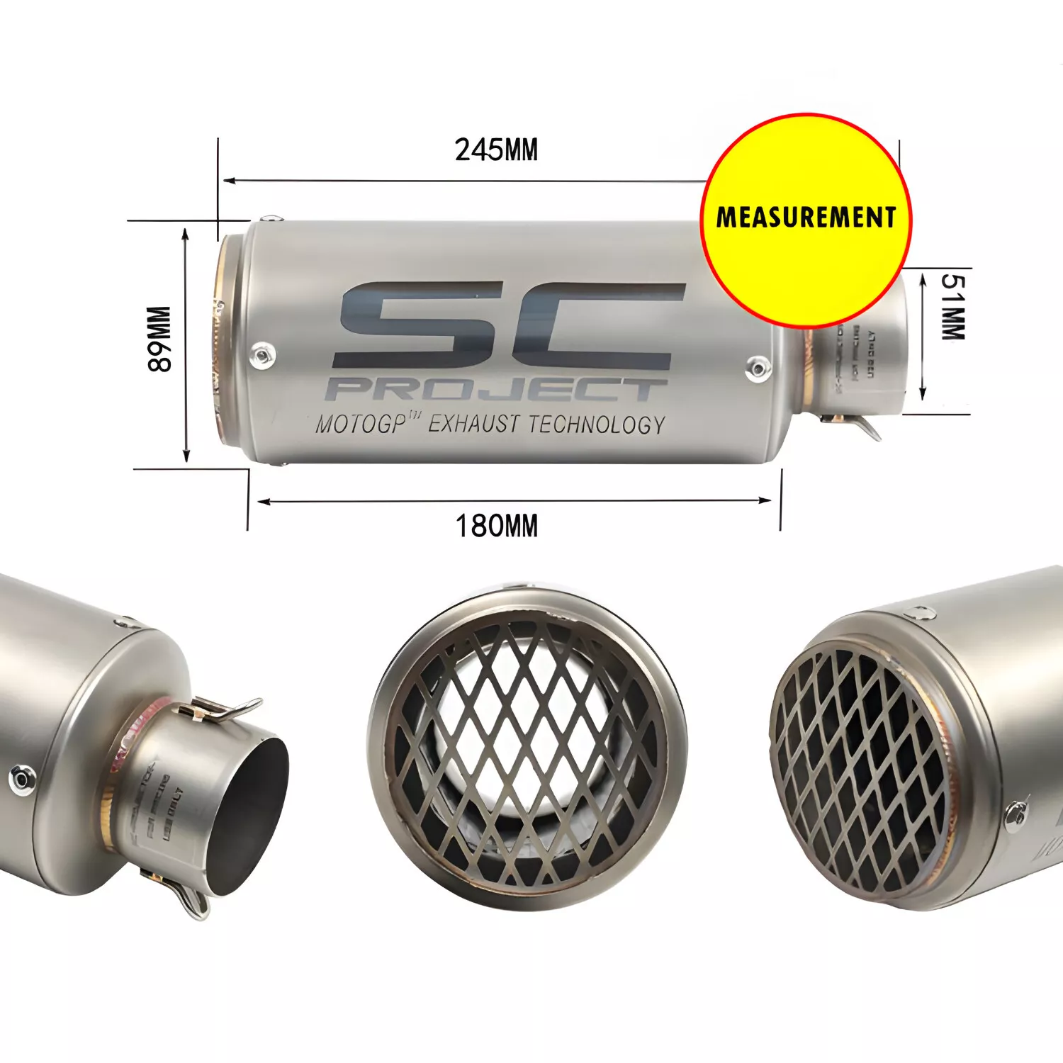 SC Project Muffler Exhaust Motorcycle Superbike 51mm Universal Silver Net + DHL