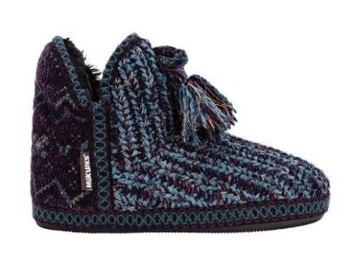 Muk Luks Mollie Dark Purple Knit Slippers Womens XL 11-12 Ankle Bootie Cozy Shoe