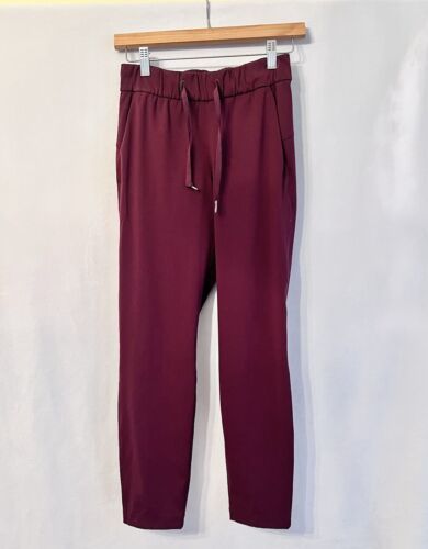 Lululemon On the Fly Pant 7/8 SIZE 2 Dark Red Garnet Drawstring Quick Dry EUC
