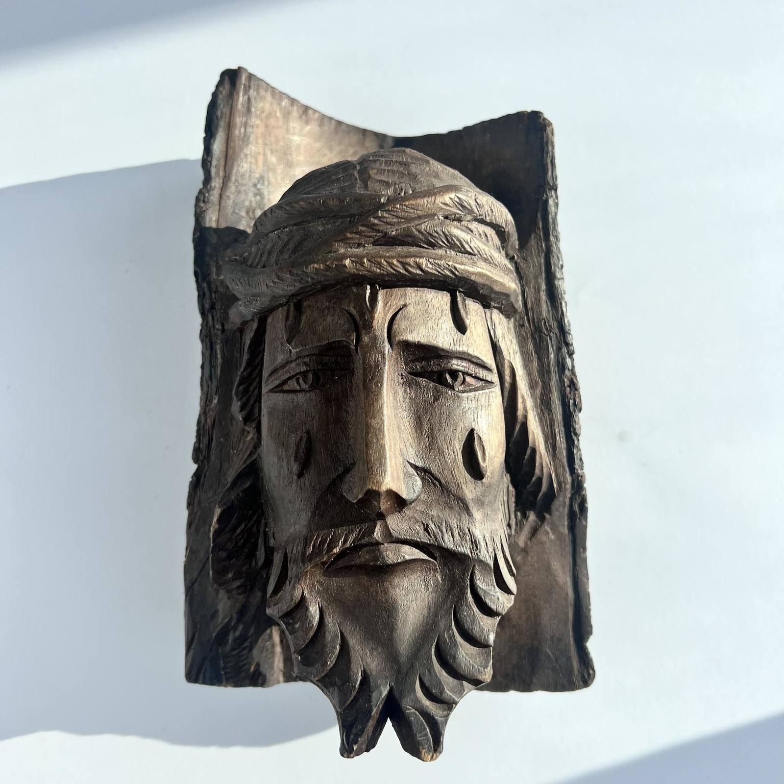 Unusual Antique Vintage Religion Hand Carved Wooden Figure Head Jesus Christ Gift