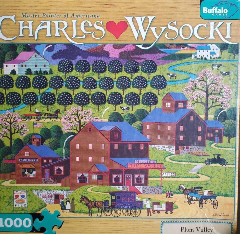 RARE MB Charles Wysocki Plum Valley Artwork 1000 Piece Jigsaw Puzzle 2005 Hasbro