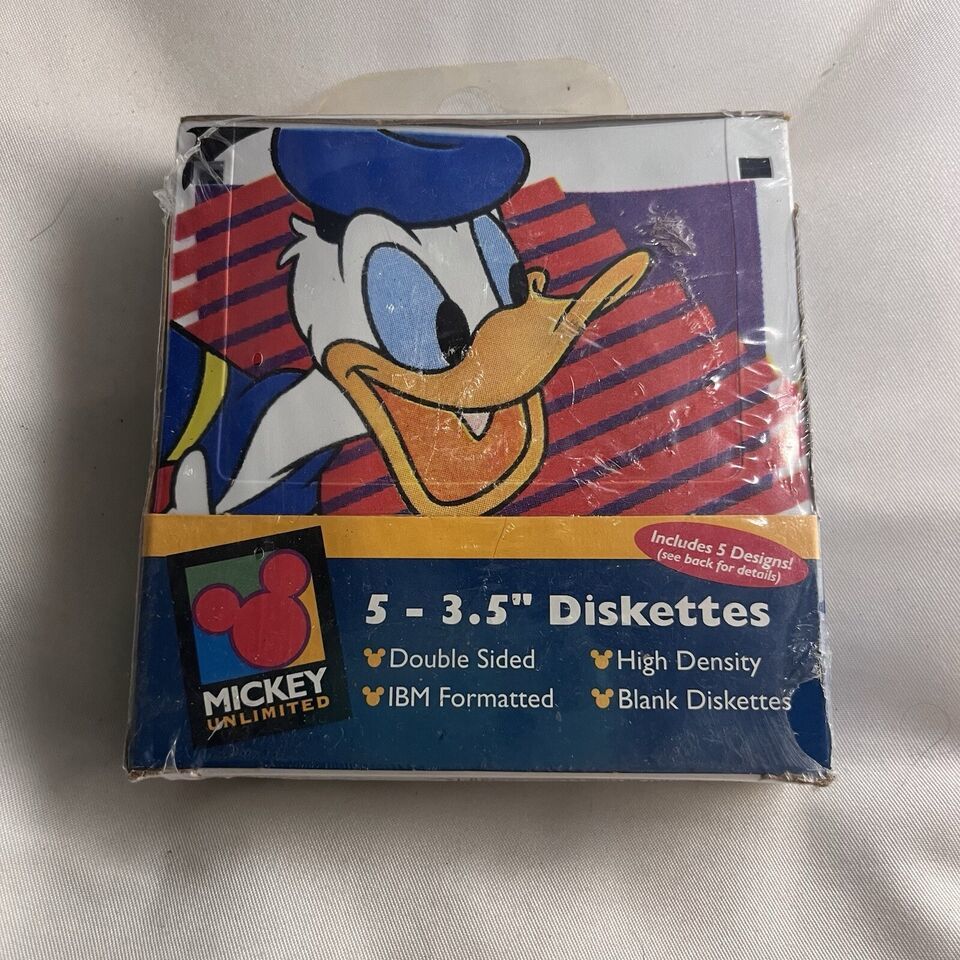 Vintage Sealed Full Box Disney Mickey Unlimited Floppy Diskettes 5 Design Set