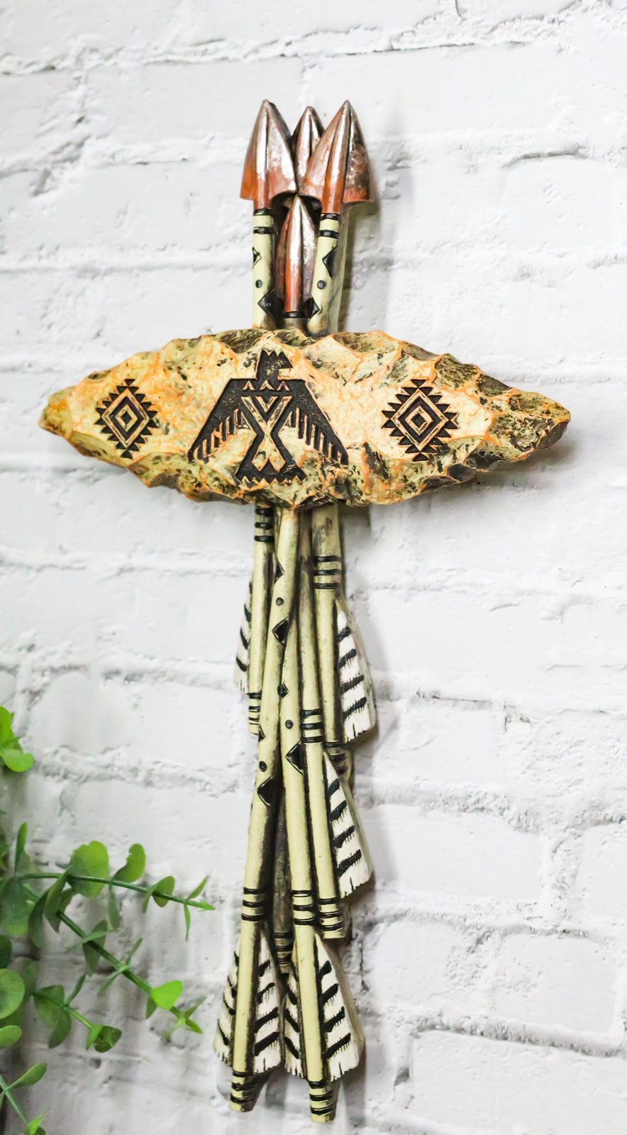 ? Embrace the spirit of the Southwest with the Indian Arrows with Eagle Carved Stone Knife Wall Cross. This stunning piece blends Native American heritage with striking craftsmanship, featuring intricately carved arrows, an eagle motif, and a stone knife, all beautifully integrated into the design. The rich symbolism and rustic details bring a sense of strength, freedom, and tradition to your home. Perfect for adding a bold, cultural statement to your living room, den, or office.