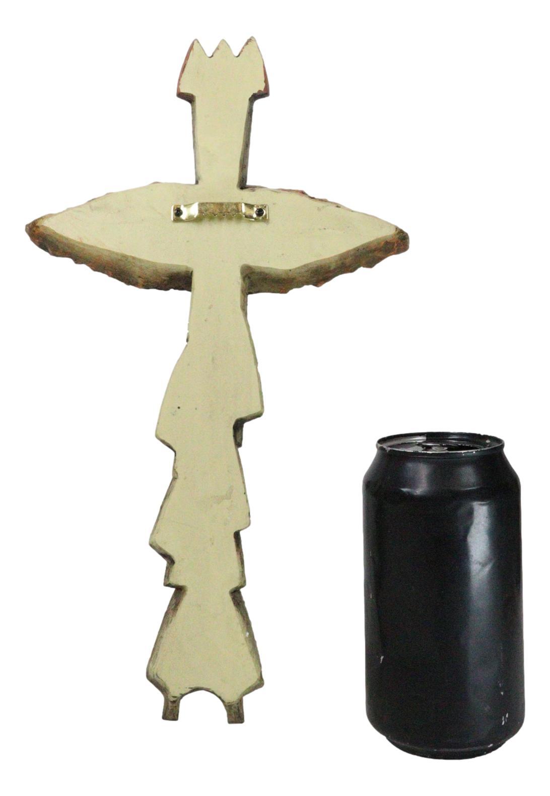 ? This Tribal Indian Arrows Decorative Wall Cross Sculpture measures 11.75" High, 7" Wide and 1" Deep approximately. It weighs about 13 ounces.