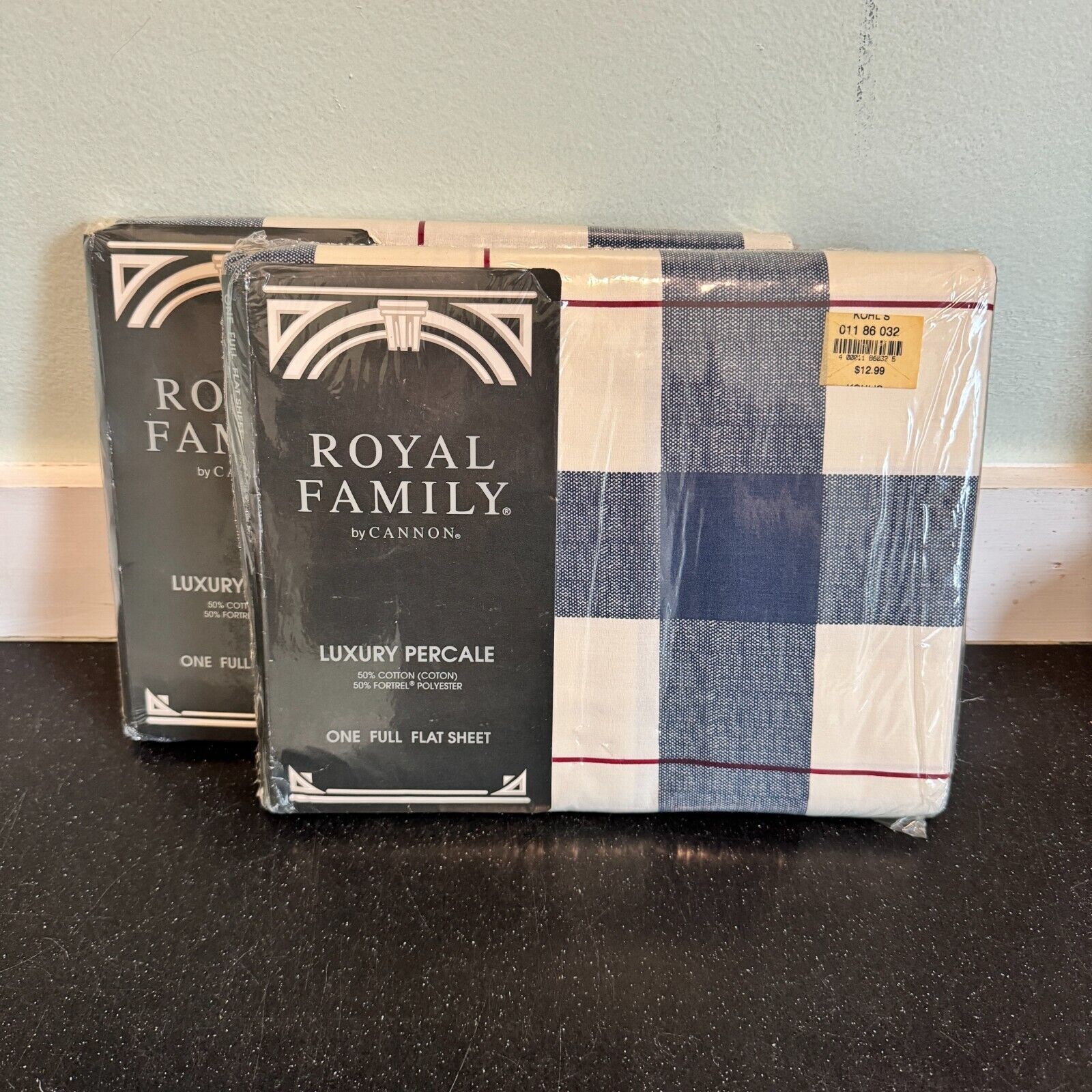 Cannon Royal Family Full Flat Sheet Frontier Plaid Set of 2 New Red White Blue