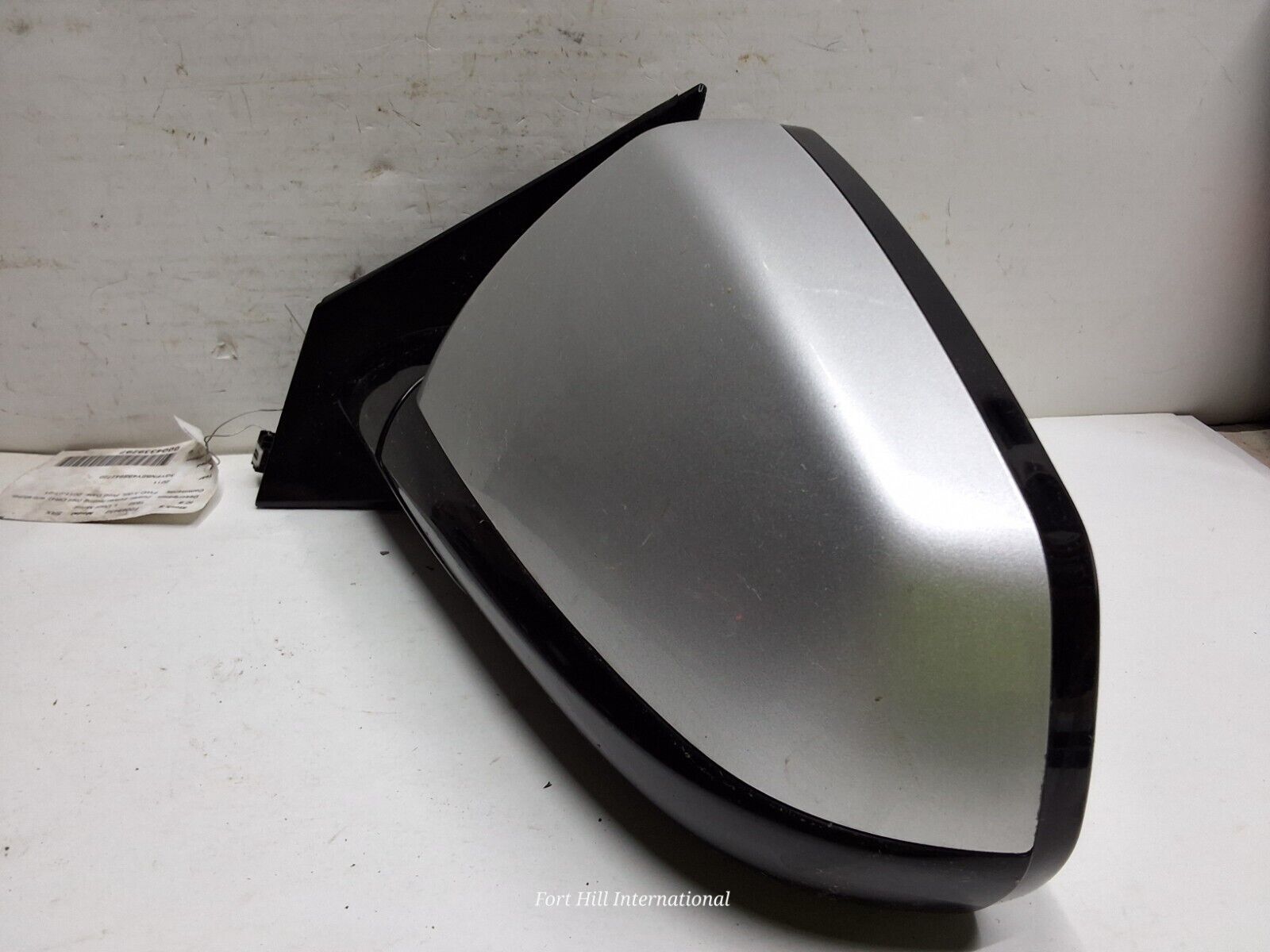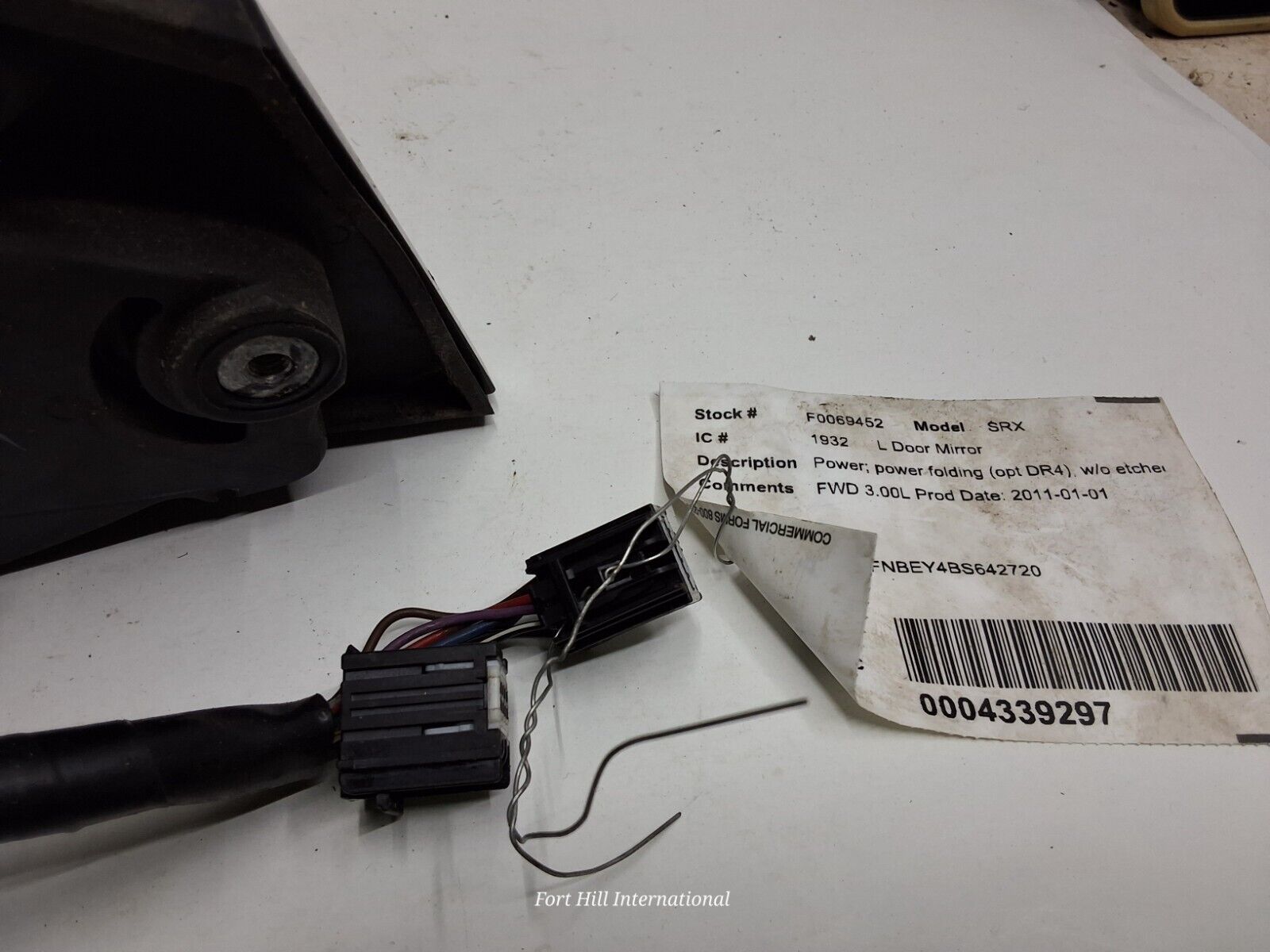 2010 through 2014 Cadillac SRX left drivers silver door mirror with two plugs and 13 wires to the mirror. Power folding automatic dimming.