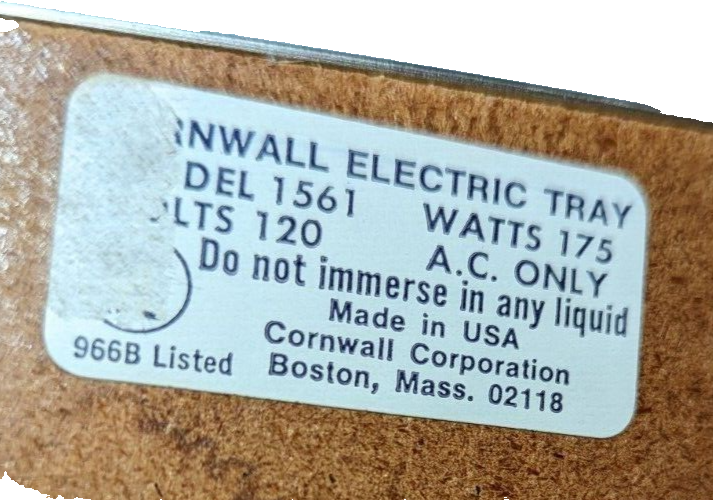 Power Cord for Cornwall Electric Tray Model 1561 only