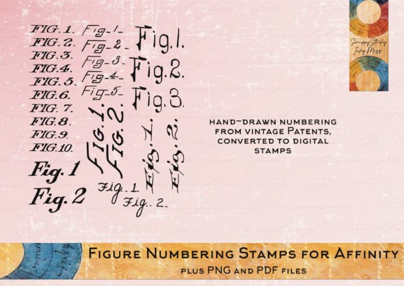 Something a bit different. These hand-drawn numbering images are taken from vintage patents. There are different groups of numbers (four two-number groups, one three, one five and one 10 number groups) for use in your creations to give them that extra little vintage something. You can isolate just the numbers or use the full stamp.
