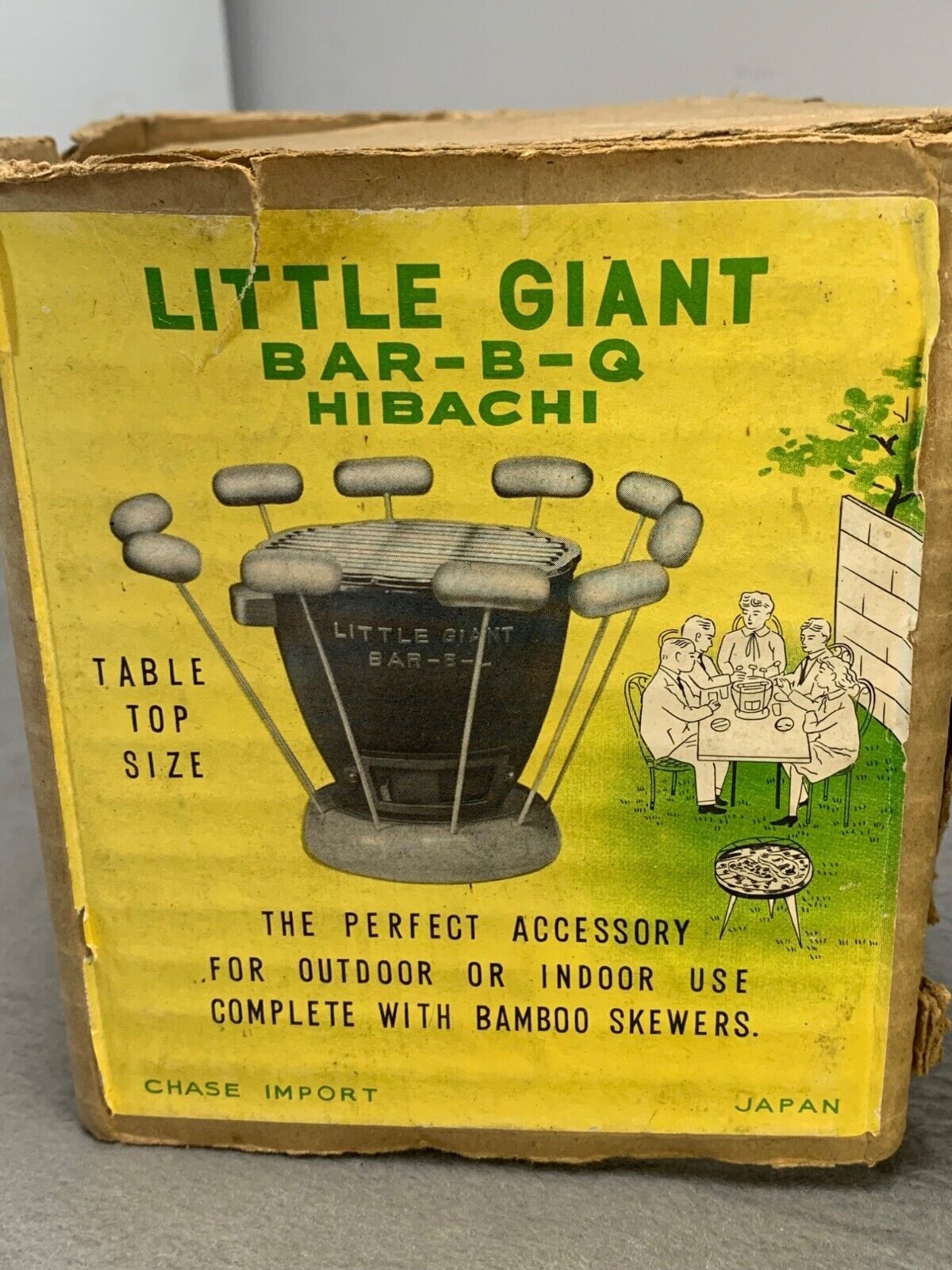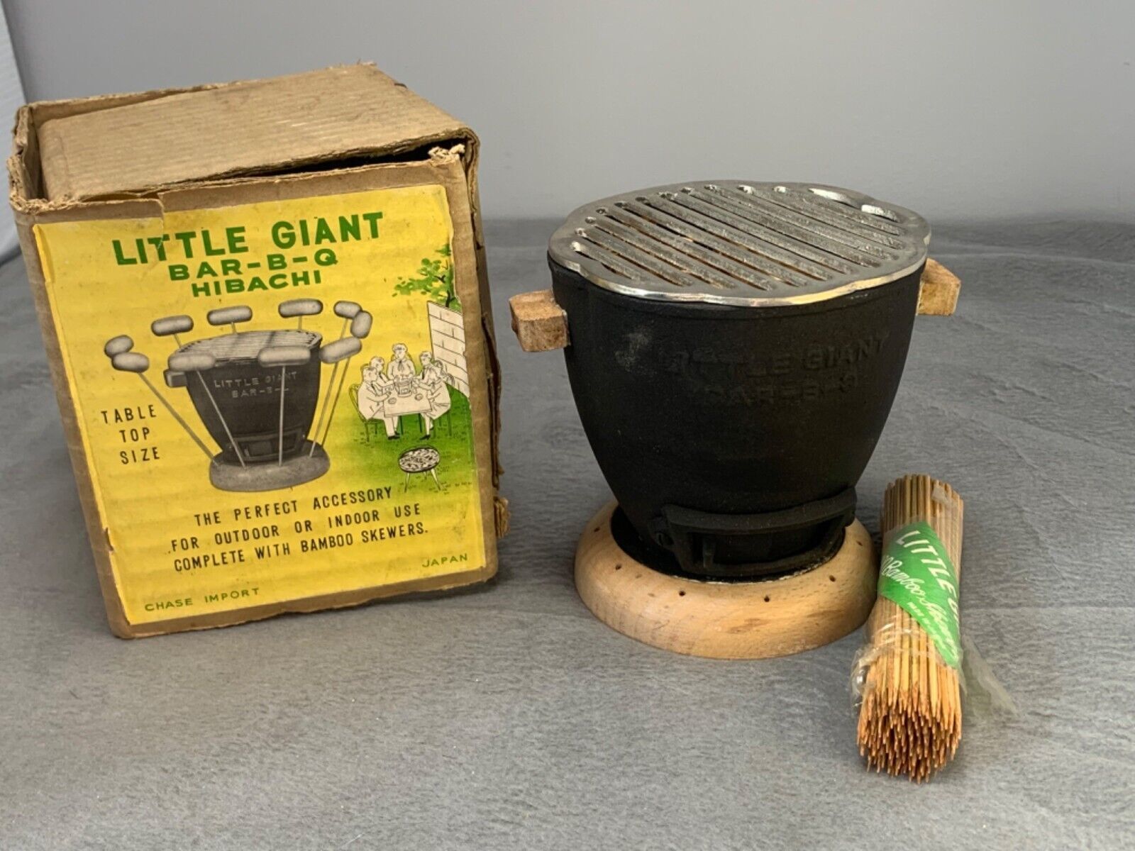 Vintage Little Giant Tabletop Bar-B-Q Hibachi with Bamboo Skewers Set Japan