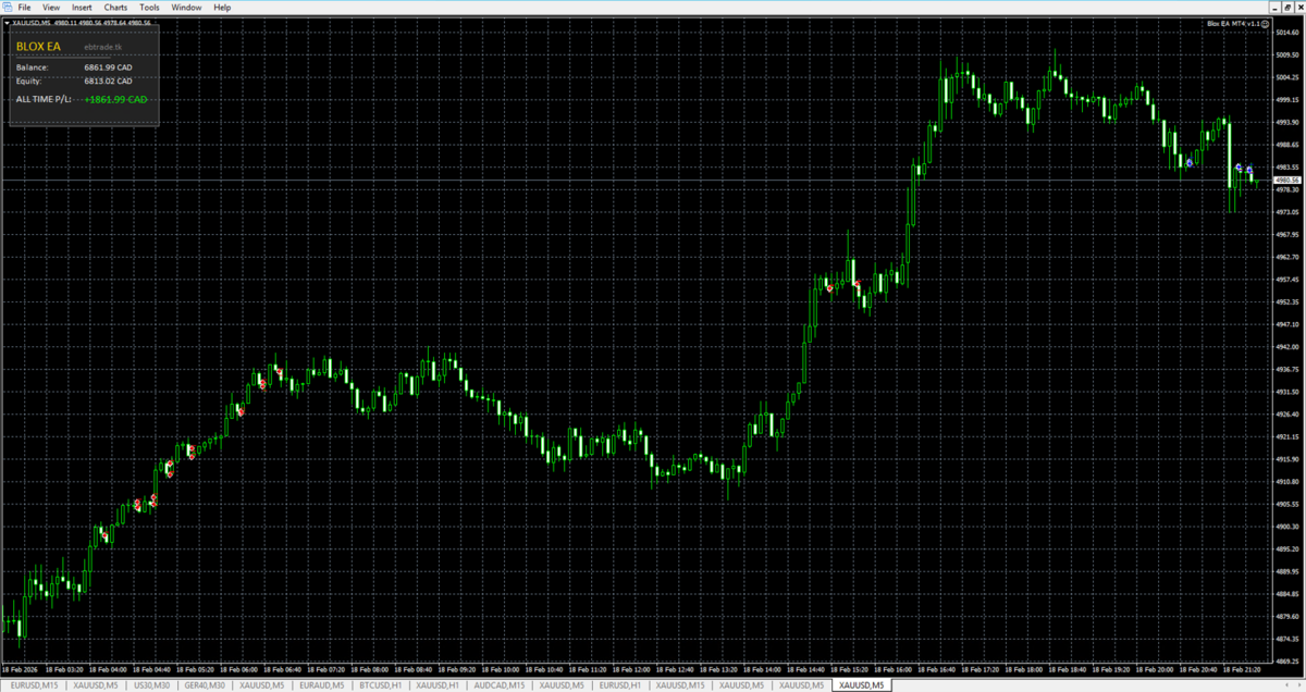 Blox EA operates as a completely automated trading platform for Forex pairs and gold. Reliable and flexible performance is achieved through accurate execution of pending orders. Advanced technical logic with effective risk control maintains the level of risk under control, while automated trading is consistent. Dynamic market changes occur; strict risk limits remain unchanged, which is helpful for reliable performance. Accurate entries, smart pending orders, and strict risk limits are appropriate for Forex pairs and Gold (XAUUSD).