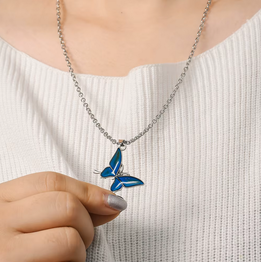 Elegant Color Changing Temperature Mood Butterfly Pendant Necklace