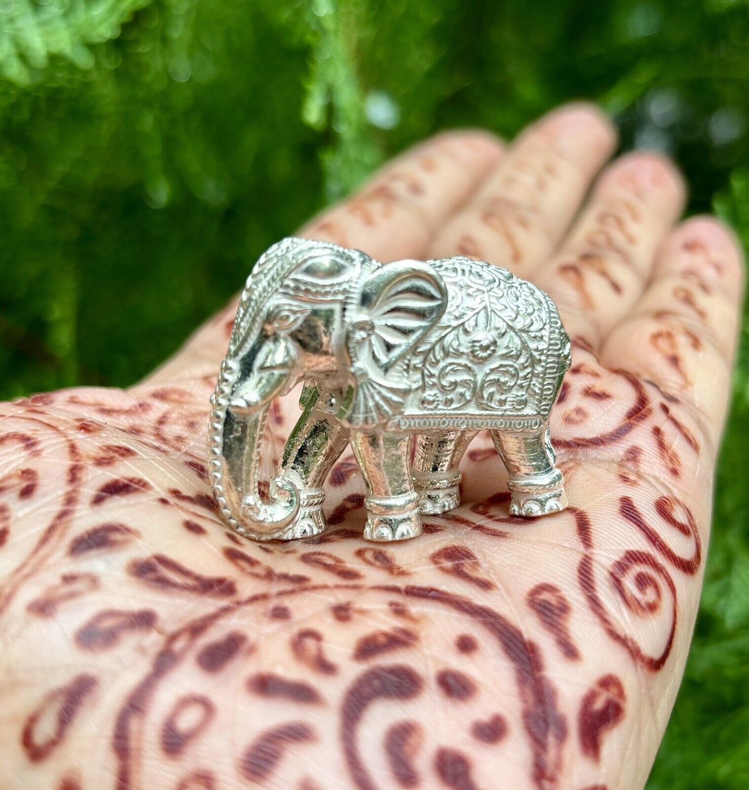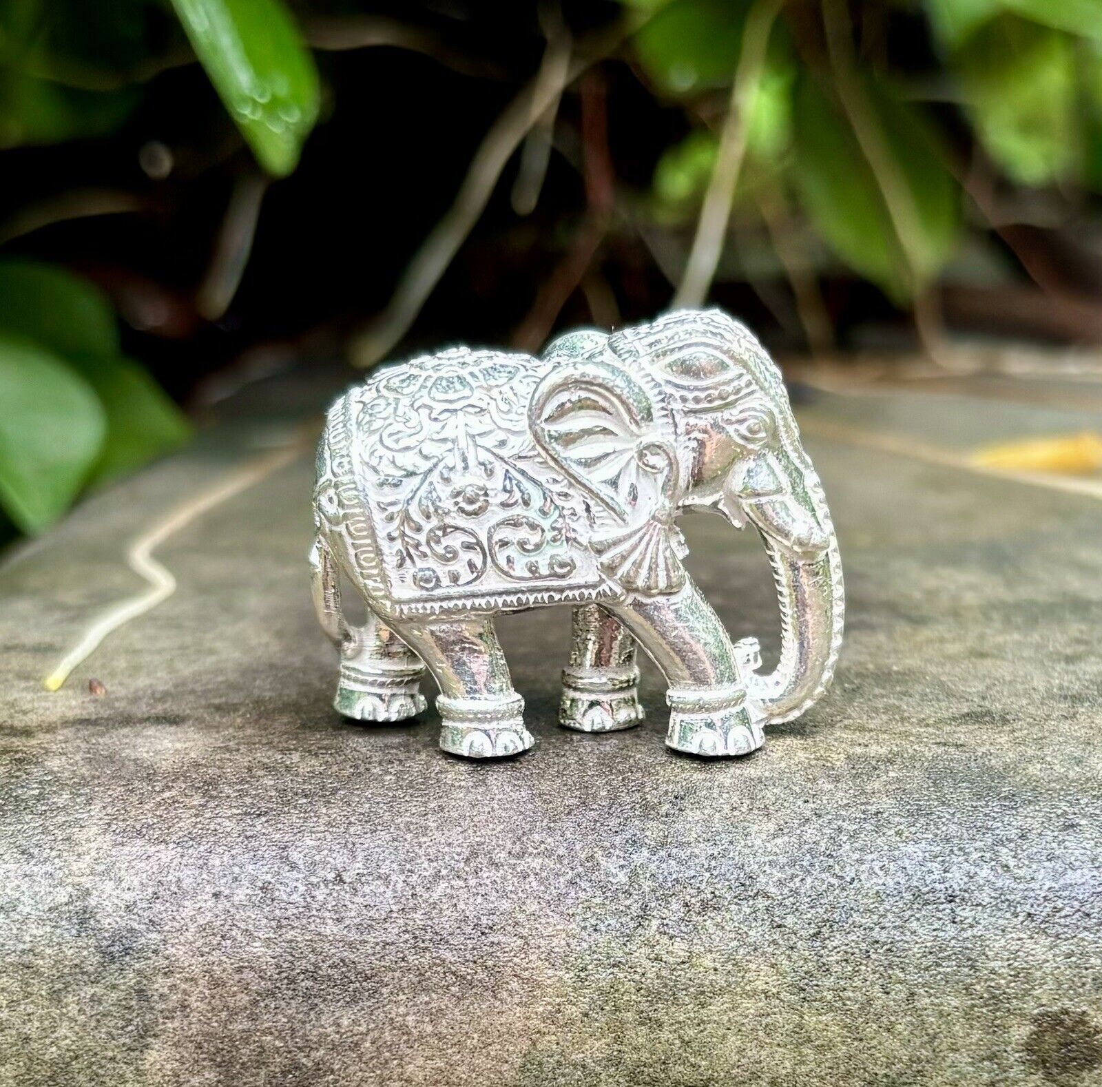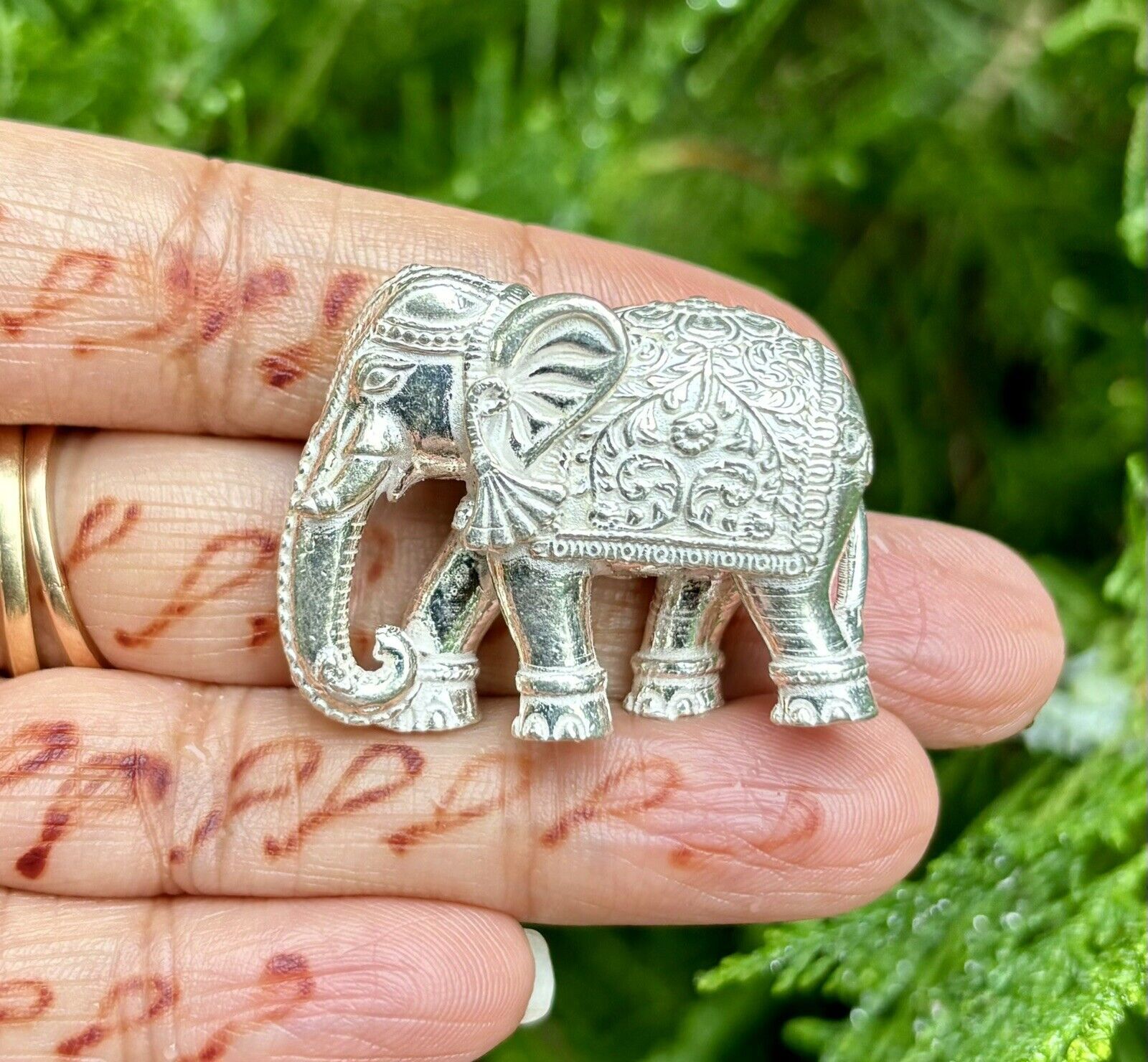 999 Feinsilber Hindu Religious Elephant Idol Statue 60,6 gm Tempel Pooja, Fahrzeug Vahana of Indra, Silber Sammlerstücke, Hathi