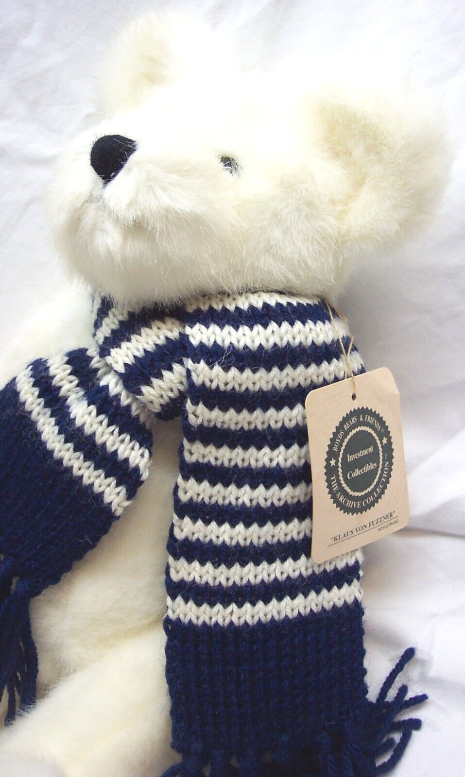 Boyds Archive KLAUS VON FUZZNER WHITE BEAR W/ SCARF 14" Plush STUFFED ANIMAL Toy