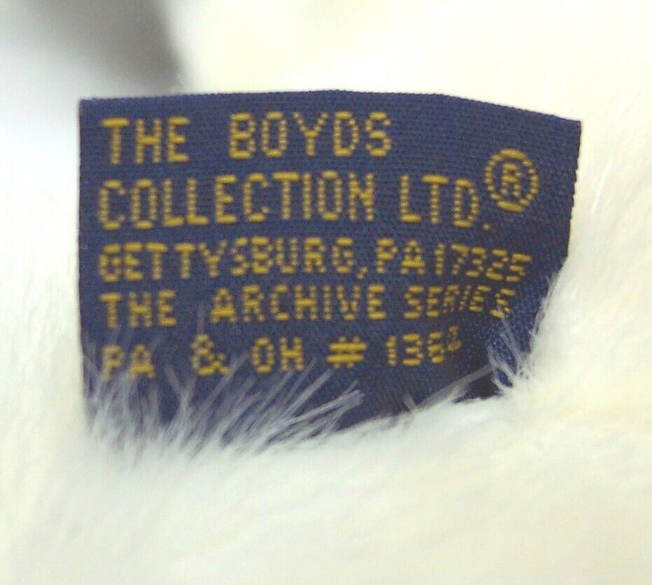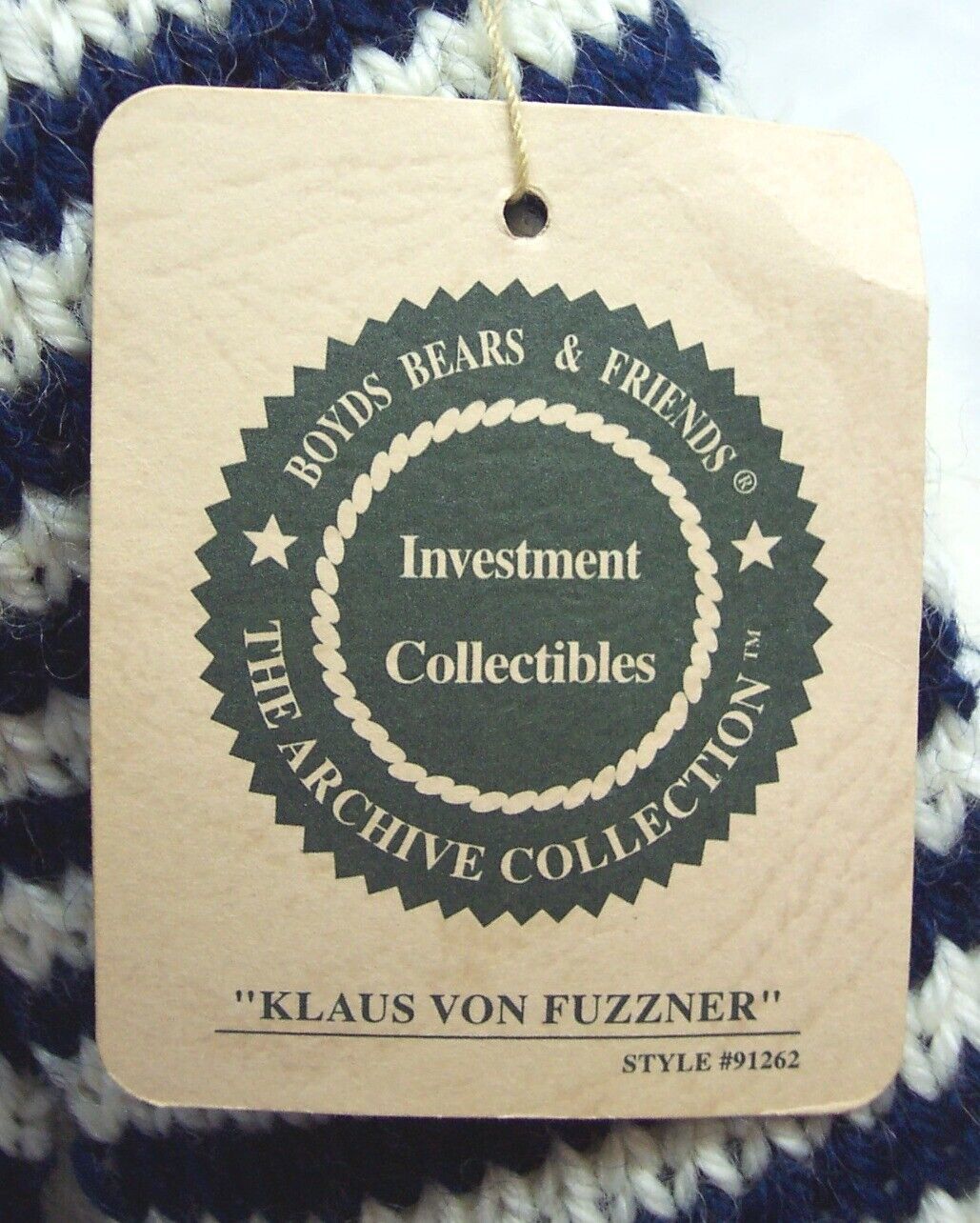 This is a Vintage Boyds Archive KLAUS VON FUZZNER WHITE BEAR W/ SNOWFLAKES AND SCARF Plush Stuffed Animal Toy. Made by Boyd's Bears in 1990-99. It is 14 inches tall in standing position. It is in great condition with the tag. It is CLEAN! No tears, stains or defects. Combine auctions to save on shipping. Please contact me if you need to make other payment arrangements. EAG