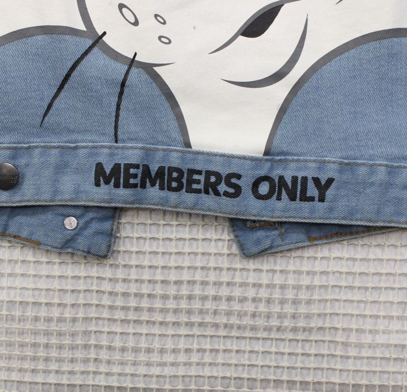 This stylish denim jacket features iconic Tweety and Sylvester graphics, blending pop culture with fashion. Crafted with cotton and a hint of spandex, it offers comfort and flexibility. The Members Only branding adds a touch of exclusivity. Ideal for showcasing fandom with a classic touch.