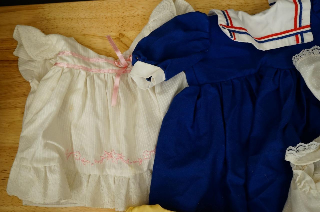 Vintage Toy Lot Baby Doll Clothing 1990s Era Mixed Size Brand Style - was used on American Girl style dolls, but not branded. Some was actual baby clothing. Dates to the mid 1990's time frame. Being sold by the original owner. VG+ clean condition. No smoke or pet odor.