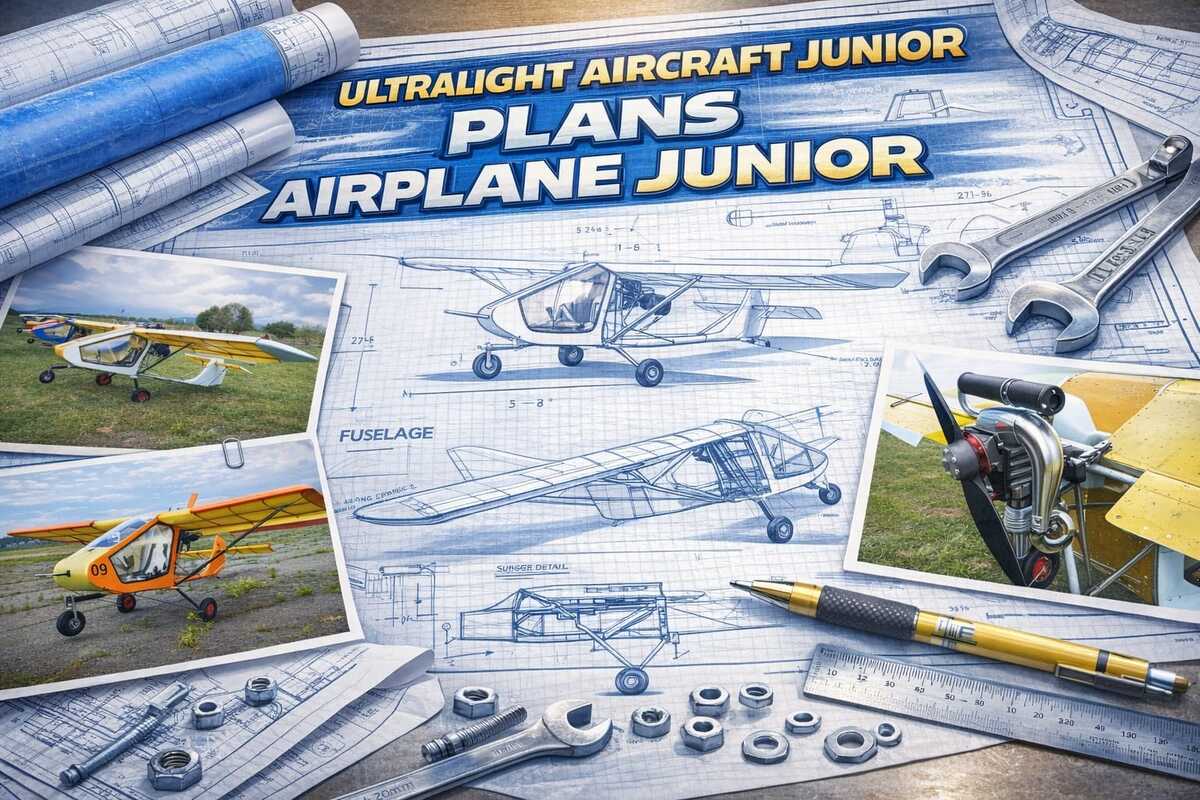 The "Airplane Junior" is a specific design for a lightweight, homebuilt ultralight aircraft, often sold with plans, featuring simple construction (duralumin frame, fiberglass skin), low fuel use (5-7L/hr), and speeds around 100-130 km/h, popular for easy build and unlicensed flight in many places, bridging the gap between paramotors and full airplanes. It's an example of DIY aviation, fitting the legal ultralight definition (like US FAR-103) for simplified construction/flying.
