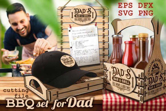 This set includes a holder for spices and sauces for barbecue and grilling, a tray for dishes and drinks, a board for Dad’s signature barbecue recipe, as well as an engraved label for the best barbecue master, which can be easily sewn onto any cap.