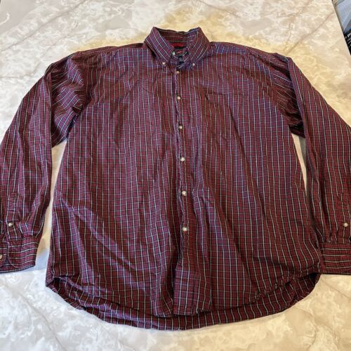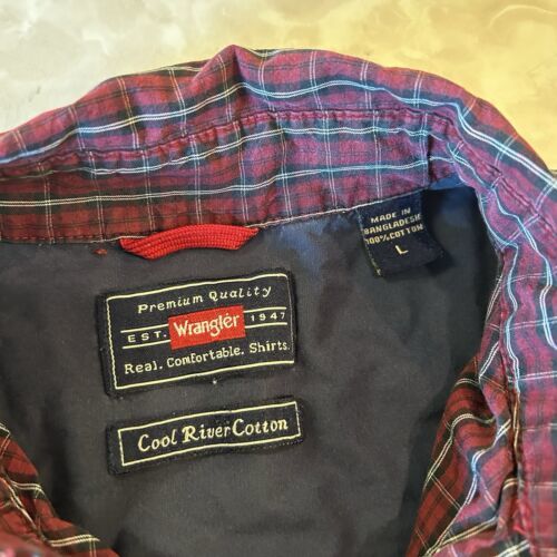 Wrangler Men’s Size L Cool River Cotton Red Plaid Button-Up Shirt, Long Sleeve