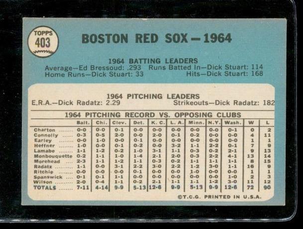 Vintage Baseball 1965 Topps 1964 Boston Red Sox Team Card #403 Carl Yaztrzemski