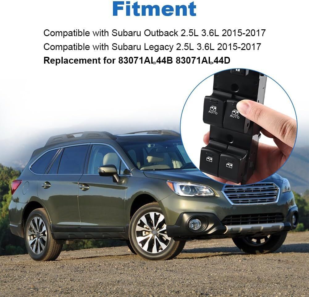 Fitment: The dual-automatic electric window switch compatible with Subaru Outback Legacy 2.5L 3.6L 2015 2016 2017. Replacement for 83071AL44A, 83071AL44B, 83071AL44C, 83071AL44D Function: Window switch is the core component of window adjustment, includes controls for window glass down and up, electric window lock and door lock, and has the function of automatically raising and lowering the front windows Sturdy durable: The window switch kit is made of PP plastic and ABS plastic, durable, heat resistant, not easy to fracture and deform, and comfortable to touch. Alloy conductor has excellent conductivity and low resistance loss Easy to install: No need for very professional installation tools, and the electrical plug is simple. After the damaged window switch is removed, plug and play Warm tips: Please confirm your oe number and car model before buying this accessory, and check the description and pictures to ensure that it is suitable for your vehicle. Because there are many versions of this switch, they have the same appearance but different internal pins