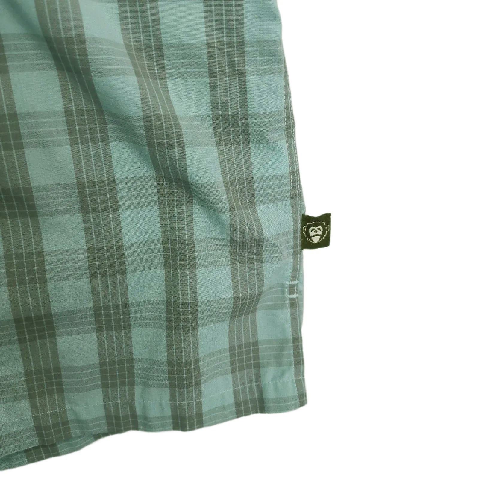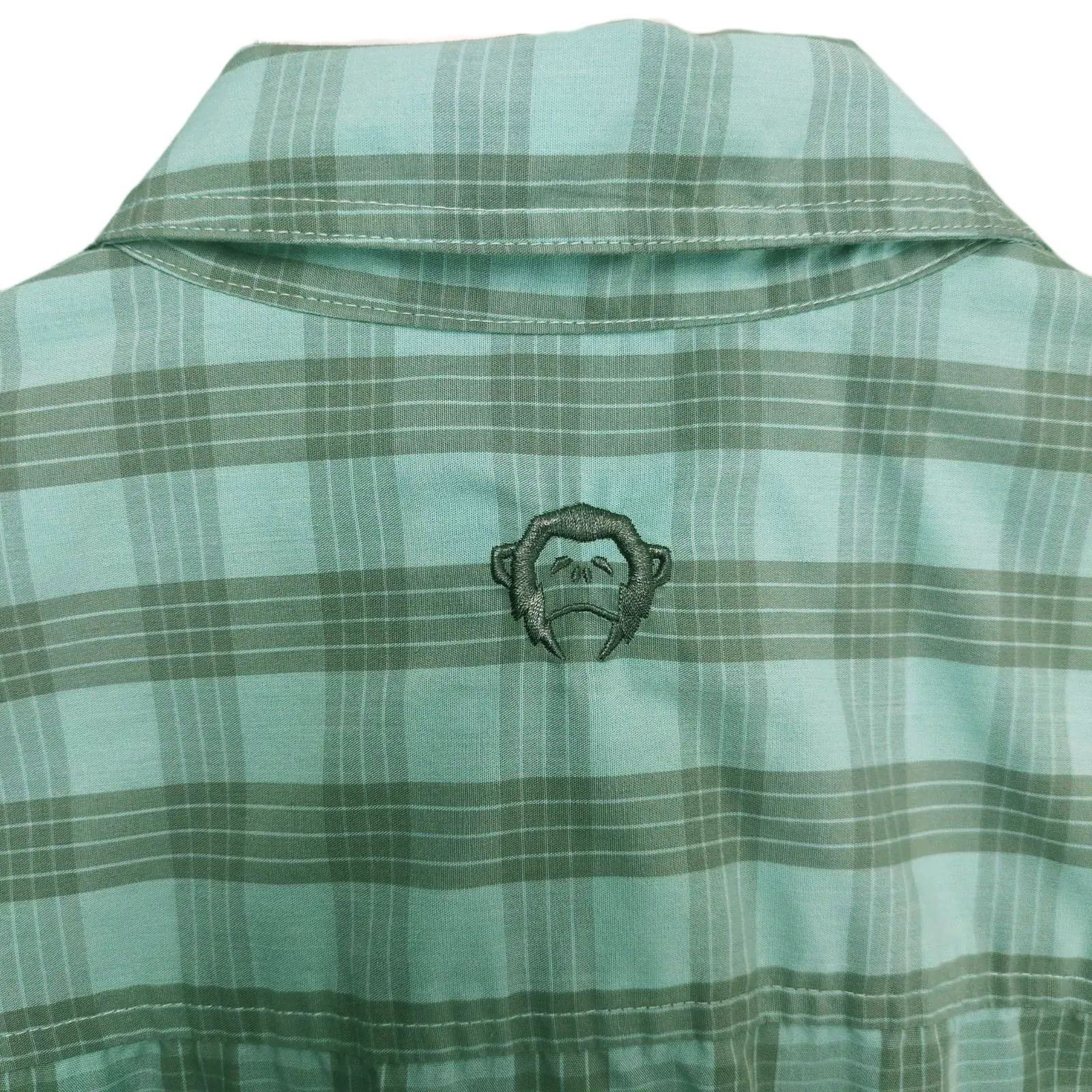 -Features: Button front closure, short sleeves, collared neckline, front pockets, cell phone pocket, Howler Bros logo embroidered on back side tag, aqua-gray plaid