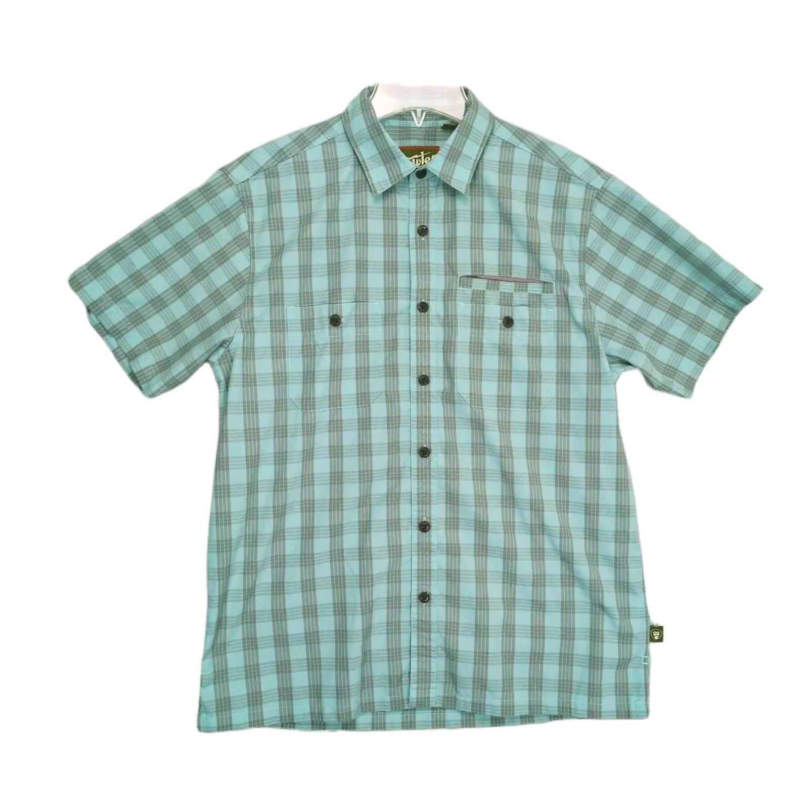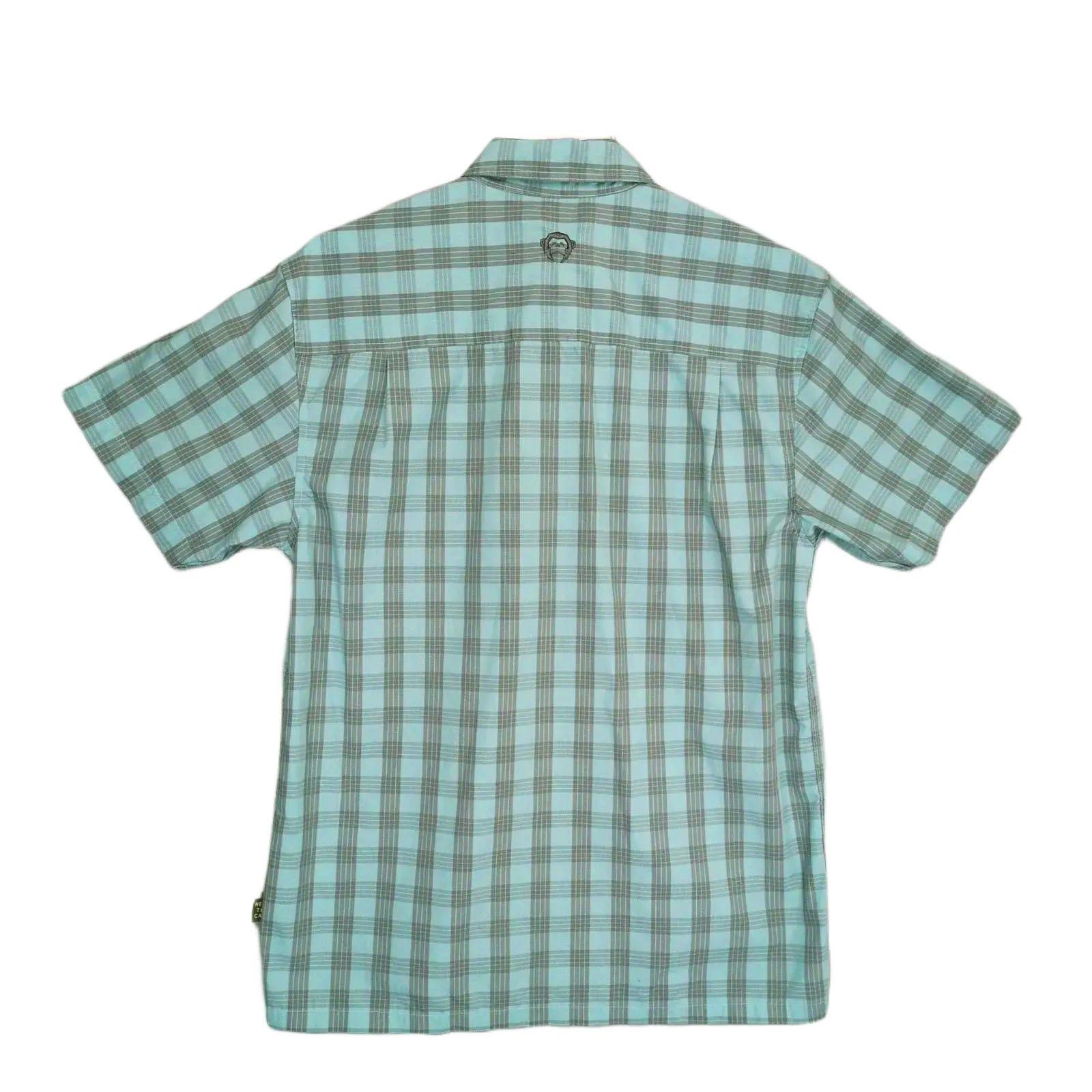 Howler Bros Men's S Aqua-Gray Plaid Button Up Shirt, Short Sleeves, Pockets