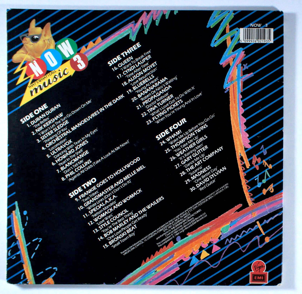 Now That's What I Call Music 3 is a double album collection of 30 Top 30 hits by the original artists. The album features: Duran Duran, Queen, Cyndi Lauper, Tina Turner, Wham!, Bob Marley, Phil Collins, Thompson Twins, Grandmaster, and many more.