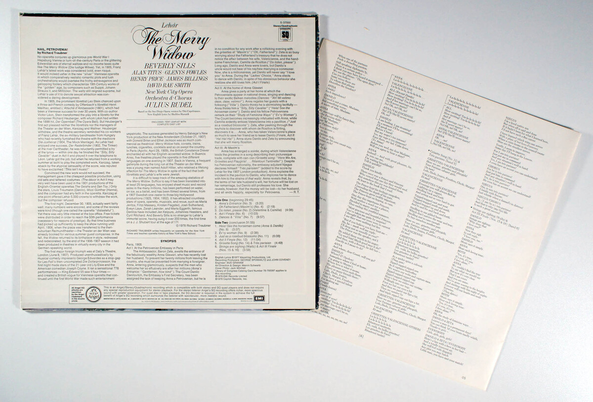 Lehar - The Merry Widow (1978) Vinyl LP Beverly Sills, Julius Rudel Soundtrack
