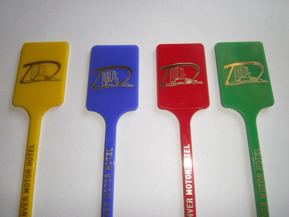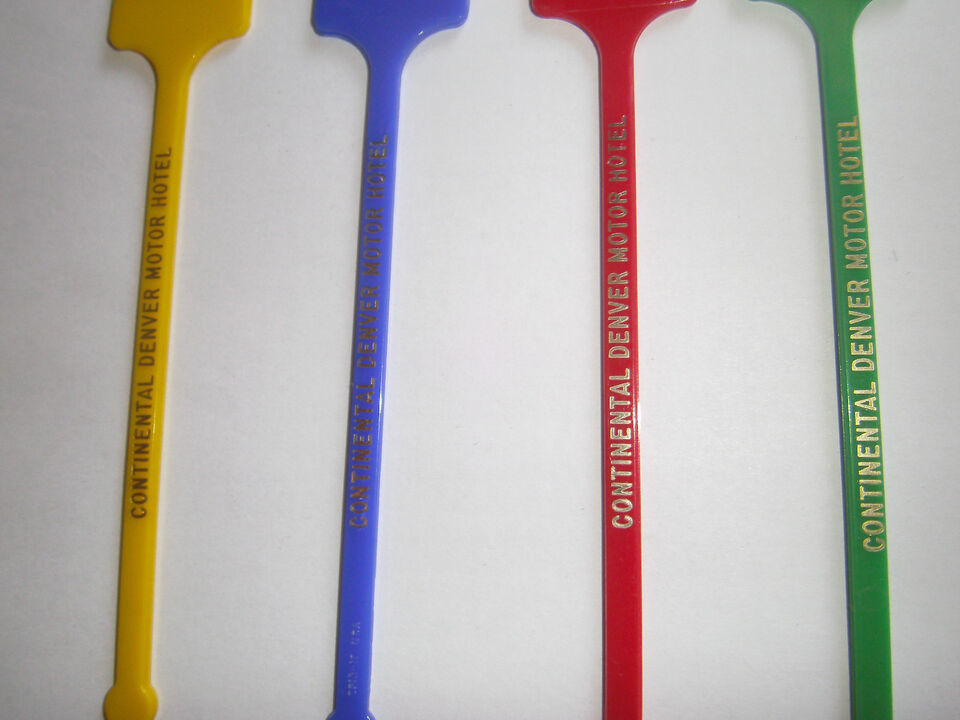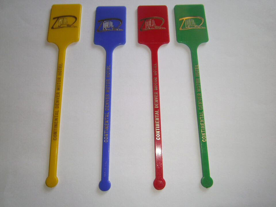 4 Continental Denver Motor Hotel Swizzle Sticks Drink Stirrers SPIR-IT, 4 Colors