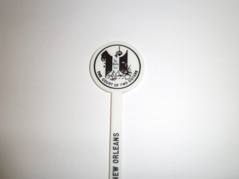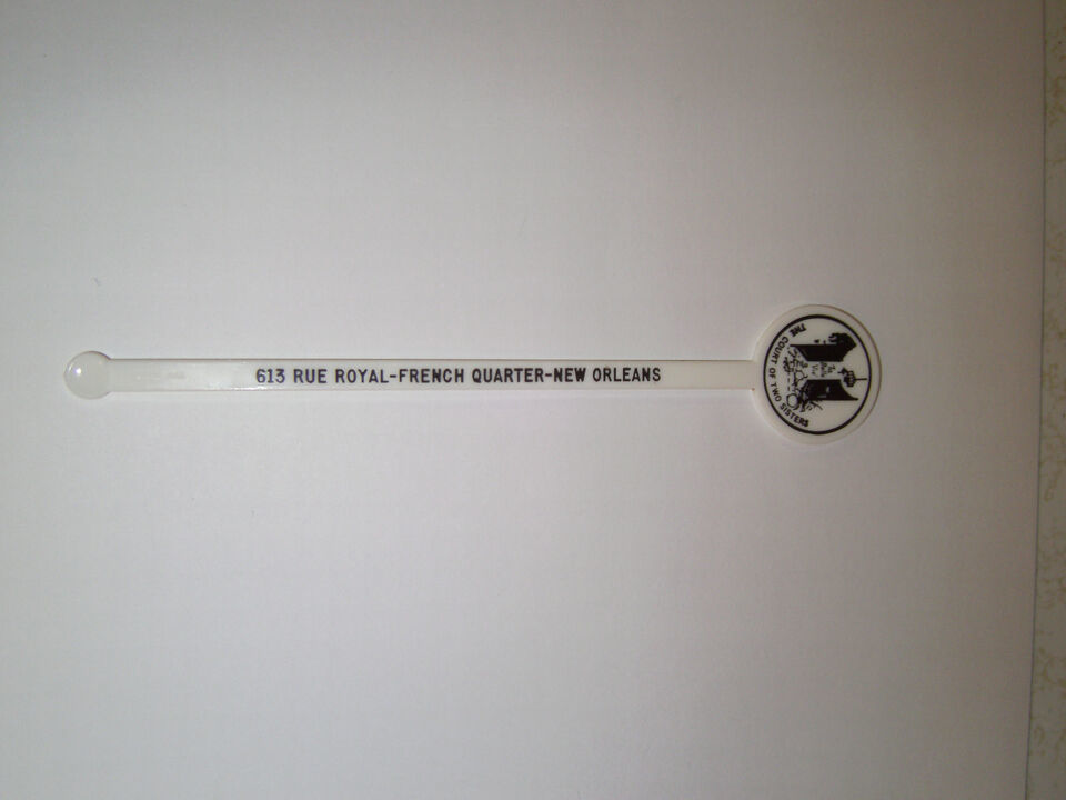 The COURT of Two SISTERS 613 Rue Royal, French Quarter, New Orleans, Louisiana Swizzle Stick. Light wear but still very nice for a collection. Measures 6 inches. SPIR-IT USA.
