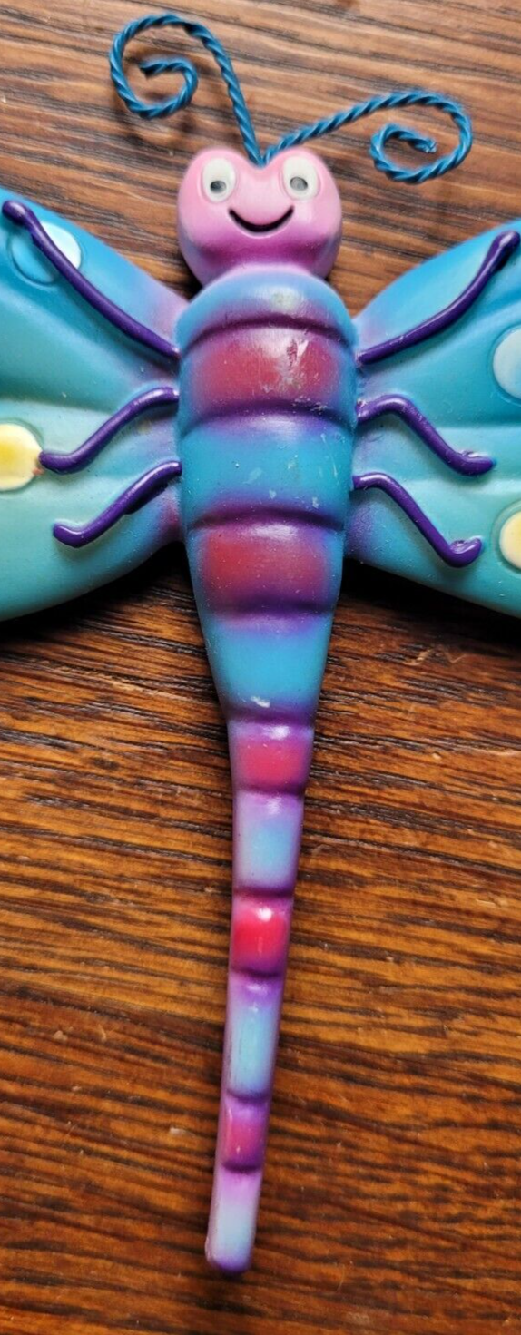 Dragonfly Wall Hang Colorful Smiling 4" Tall Bedroom Bathroom Cute Decorative