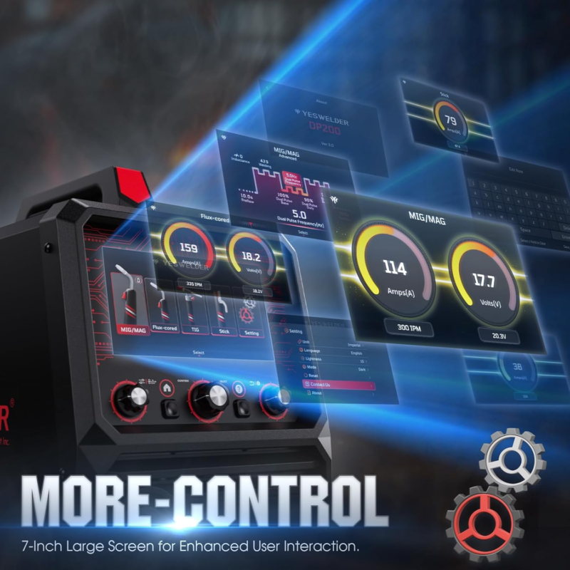 7-Inch Large LCD Screen:The YesWelder IntuiWeld interface allows for seamless adjustments with a simple knob twist, displaying every setting clearly and intuitively. Additionally, the dual-color UI lets you switch between black and white for a more personalized experience.