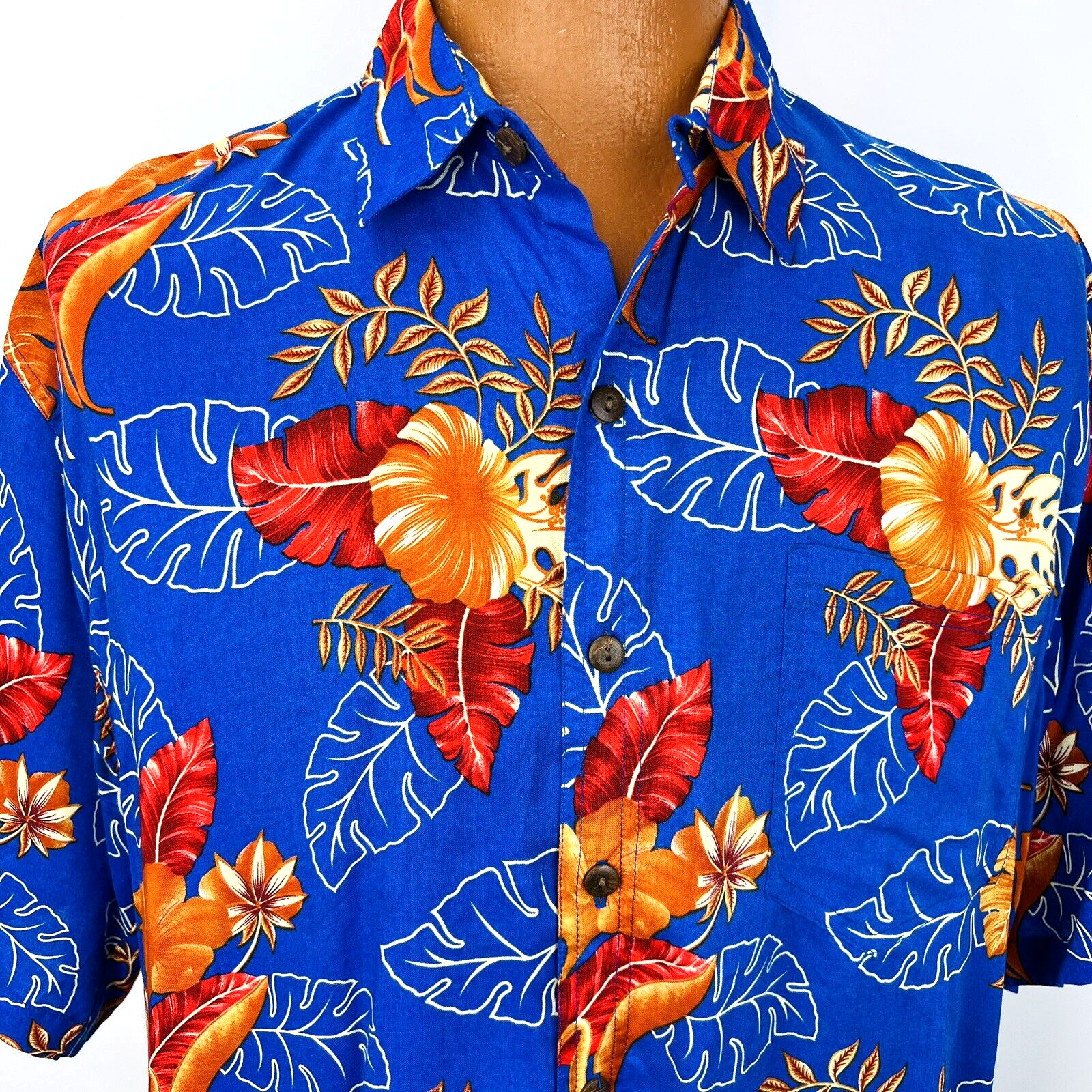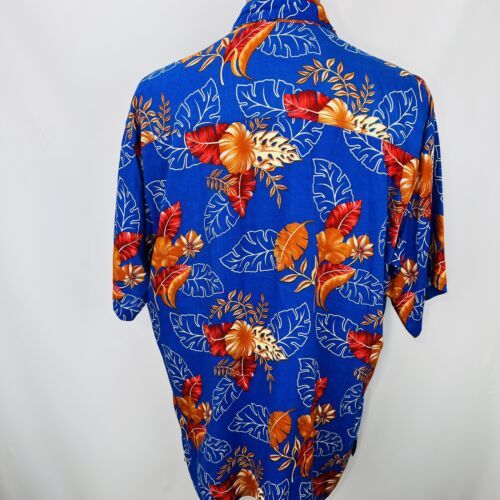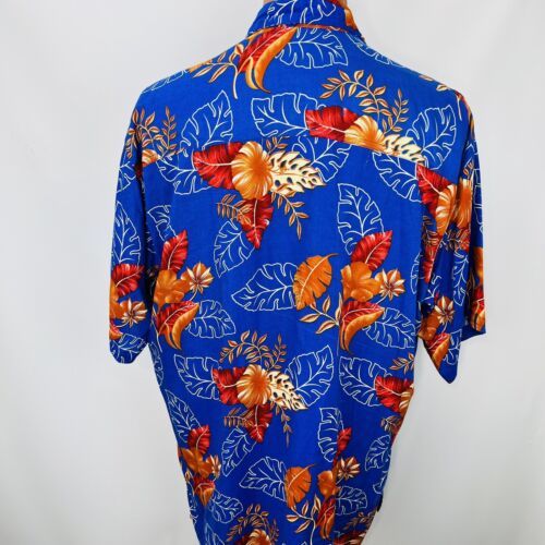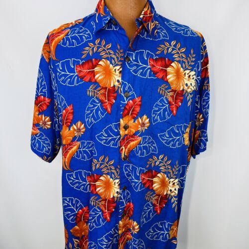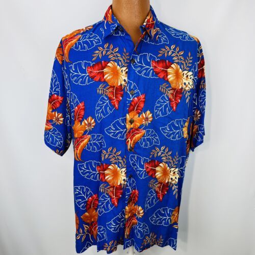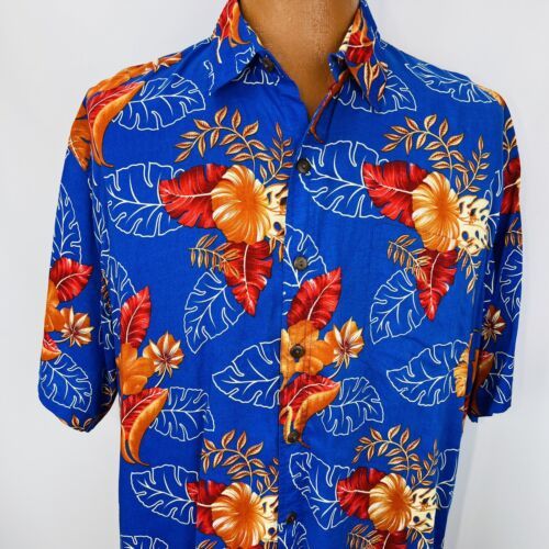Hibiscus Collection Hawaii Aloha XL Shirt Leaves Floral Tropical Blue Orange