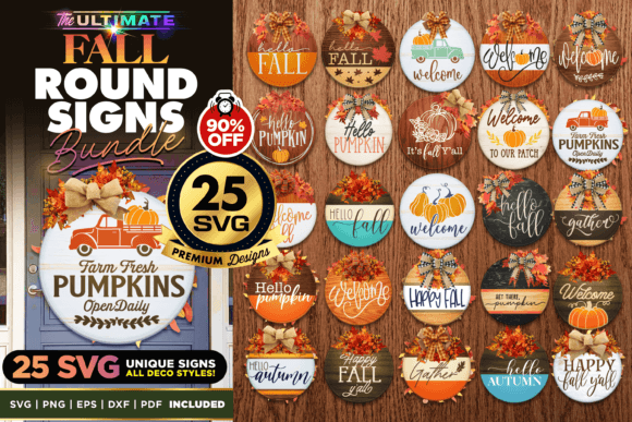 25 FALL Round Signs Bundle | BEST SELLER | SVG Bundle