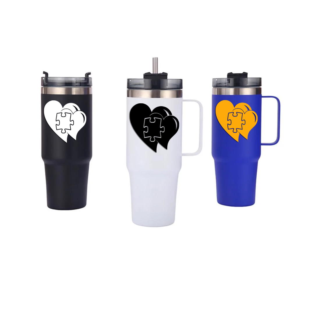Meaningful Design: A puzzle piece intertwined with two hearts symbolizes love and support for autism awareness.