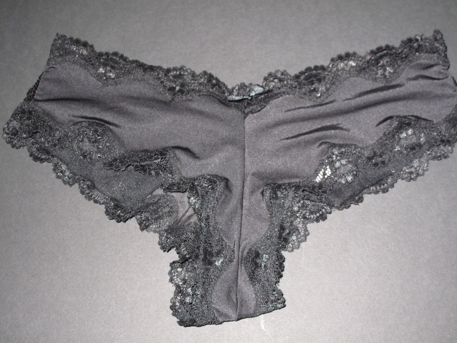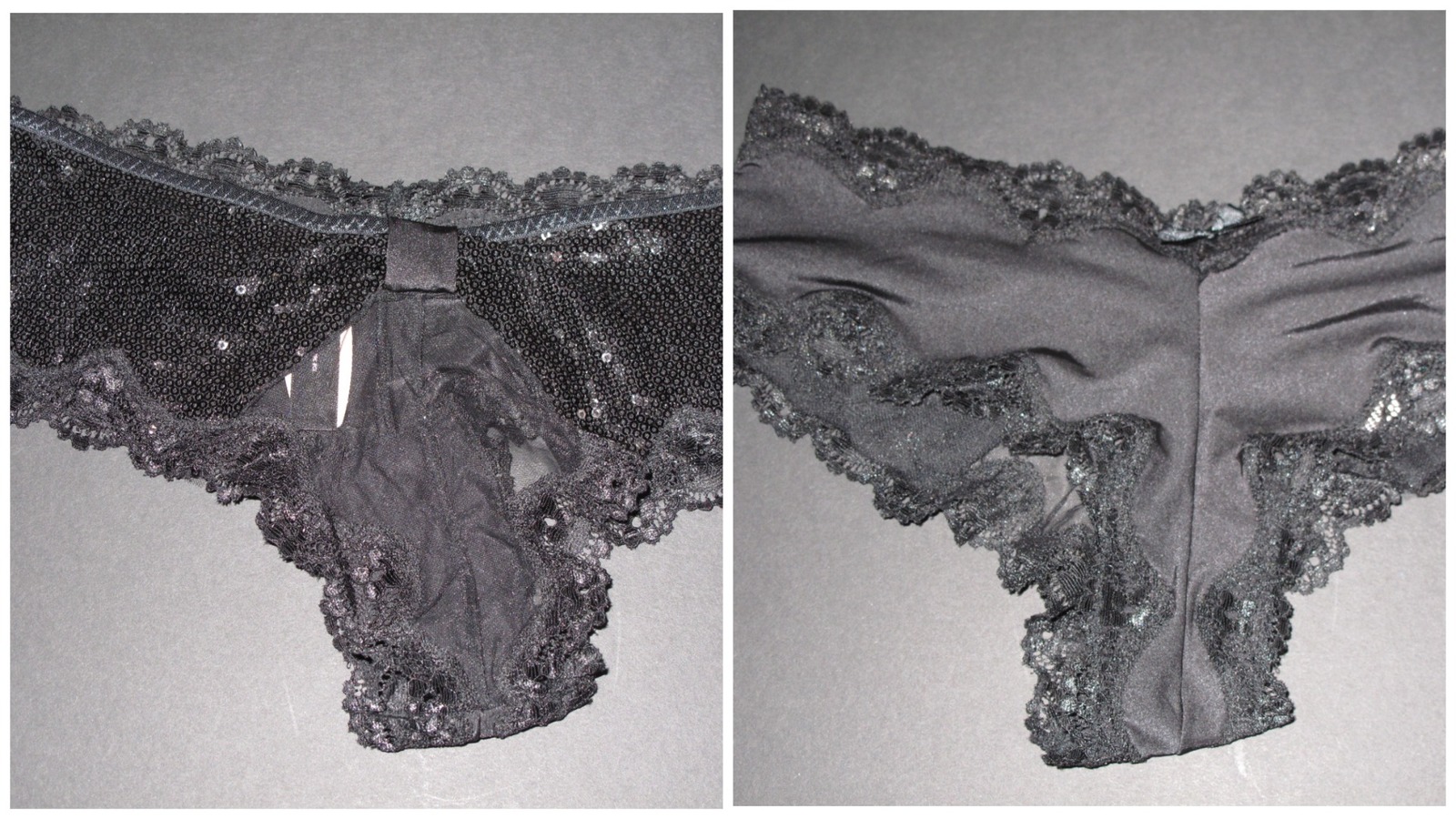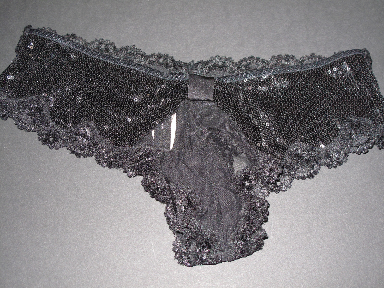 Rare ! From Old Stock Beautiful NWT Victoria's Secret Solid Strech Satin Front Sequin Black Back Floral Lace Trim Cheeky in size S/P. Please feel free to send me a message with any questions before purchase to avoid complications.No returns accepted. Due to the intimate nature of the majority of our items.
