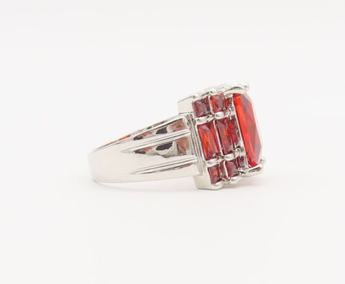 925 Sterling Silver Vintage Ring Brutalist Rectangle Cut Garnet Sz 12.5 RG27824