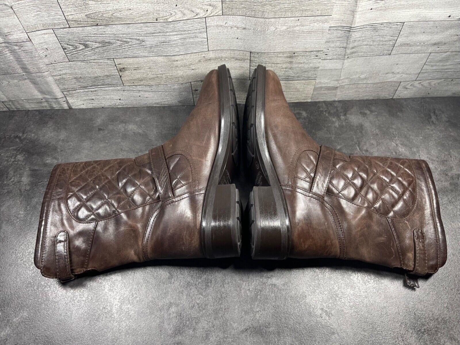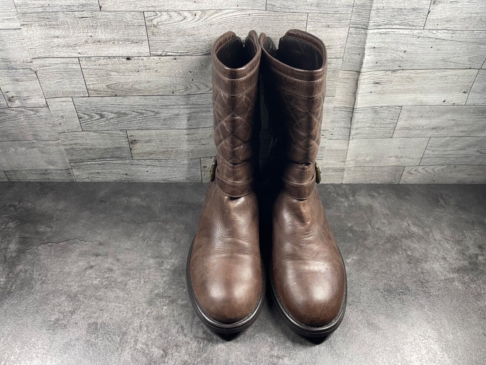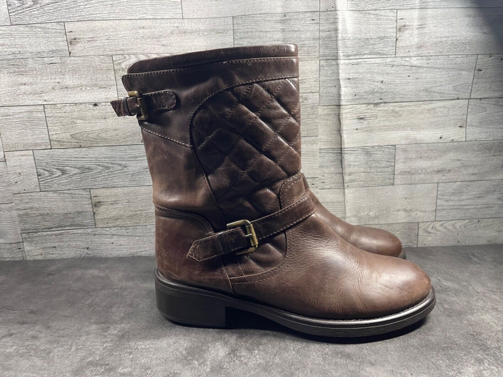 Aquatalia by Marvin K Boots Women 10M Lynn Shoe Brown Quilted Leather Moto Biker