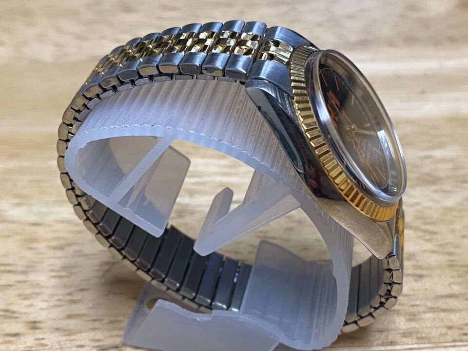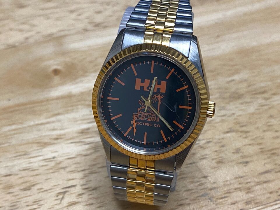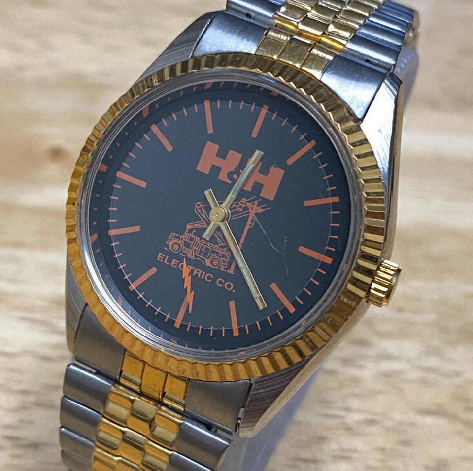 Vintage H&H Electric Quartz Watch Men Dual Tone Black Fluted Bezel New Battery