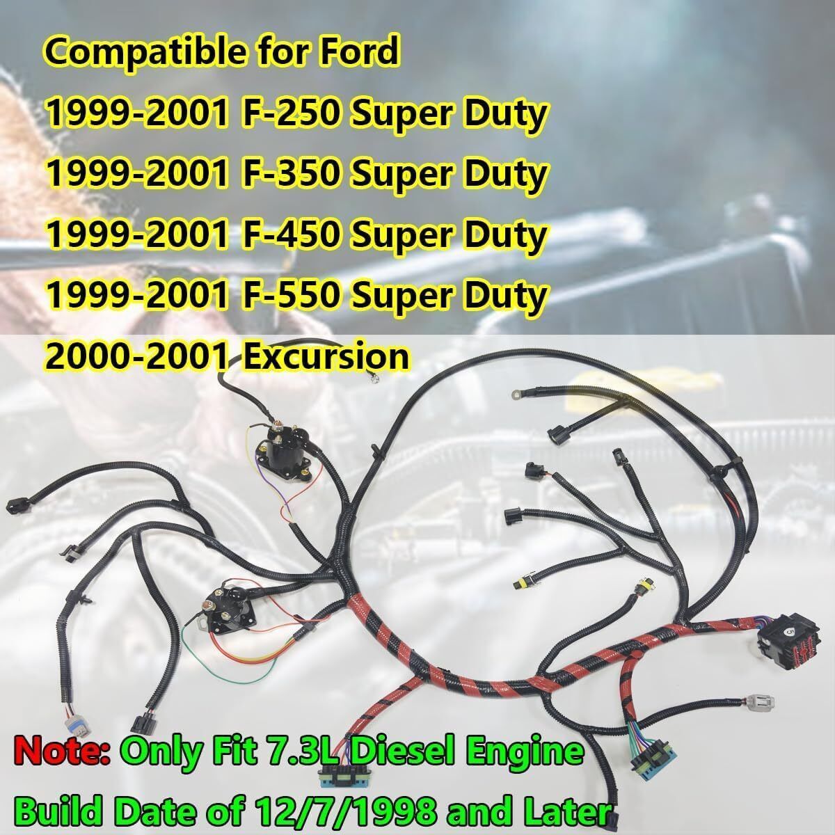 Engine Wiring Harness Compatible with 1999-2001 F-250 F-350 F-450 F-550 Super Duty, 2000-2001 Excursion 7.3L Diesel Engine Build Date of 12/7/1998 and Later