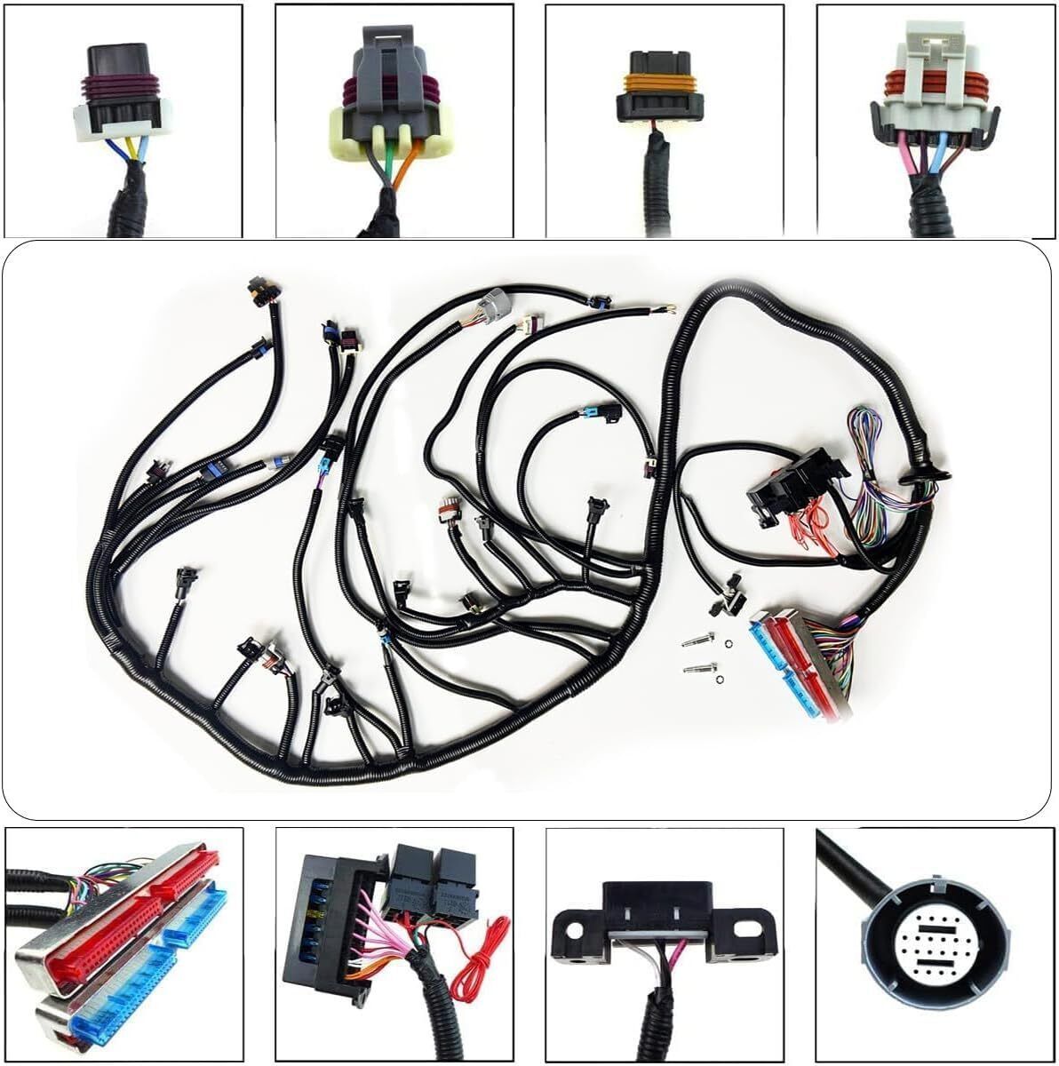 Excellent Conductivity: The complete wiring harness is made of good quality copper core wires, which has lower eccentricity and resistance, well performed in conducting electricity. GM Delphi Connectors and TXL (polyethylene cross-linked) high-temperature wire to GM specifications Durable Wiring Harness: The wrapped plastic surfaces can stand high temperatures, all kinds of chemical reagent, strong impact, and press. The extra-long 13-15 feet wires help to conduct any wiring circuits. For non-emissions equipped vehicles and do not include air pump or EGR provision Complete Accessories: The complete engine and transmission wiring harness including all engine and transmission sensor connectors, EV1 fuel injectors, 6 fuse blocks, 3 wire MAF sensor, and 24x Crank Sensor. EGR provisions. for Electronic automatic transmissions Explicit Instructions: Multiple circuit wiring harnesses are all coded by GM color for easier installation. Completely plug and play with four wire hookup (switched power, constant power, and ground connections required). A sliding grommet seal allows for professional, leak-proof installation Wide Application: The standalone swap wiring is suitable for 97 - 06 LS1/LS6 engines with the mechanical throttle body - 4L60E DBC