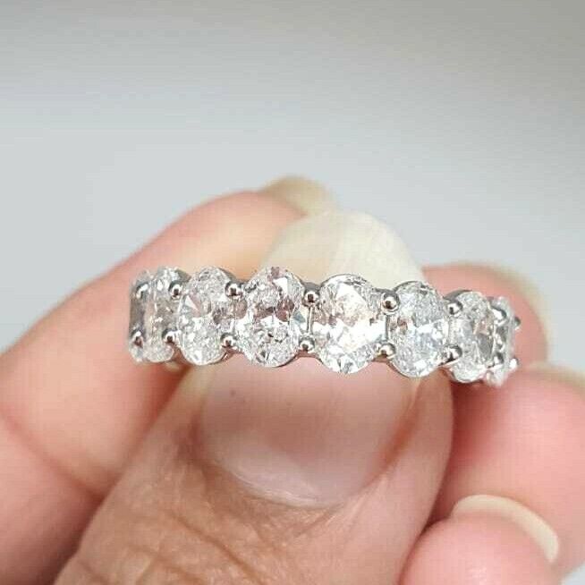 An Elegant Diamond Full Eternity Wedding Band in Classic 4-Claw Setting Oval Diamonds 5.37 Carats