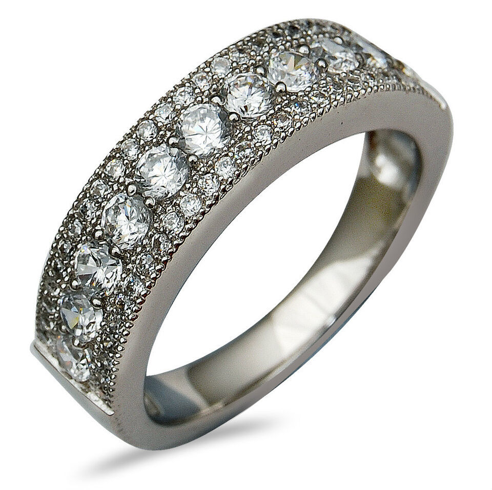 Super Gorgeous ! Diamond Half Eternity Ring with 1.00 Carat Diamonds, Millgrained Edges