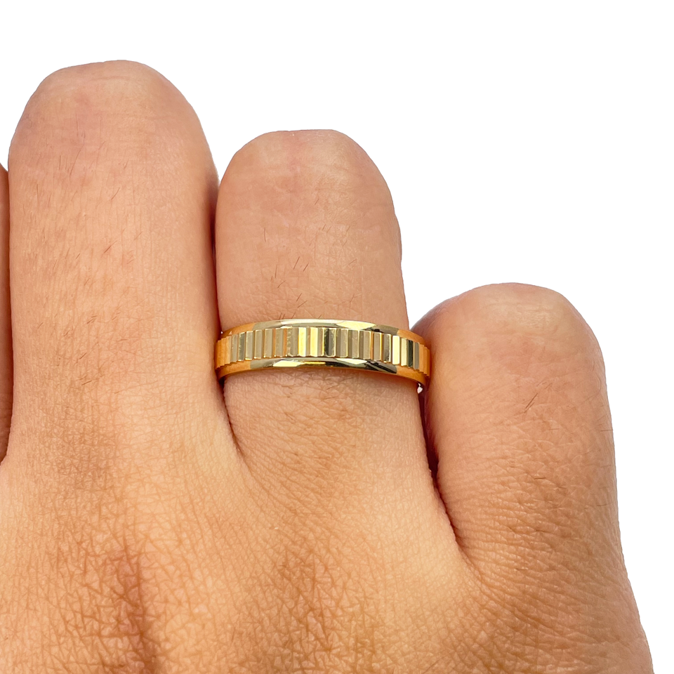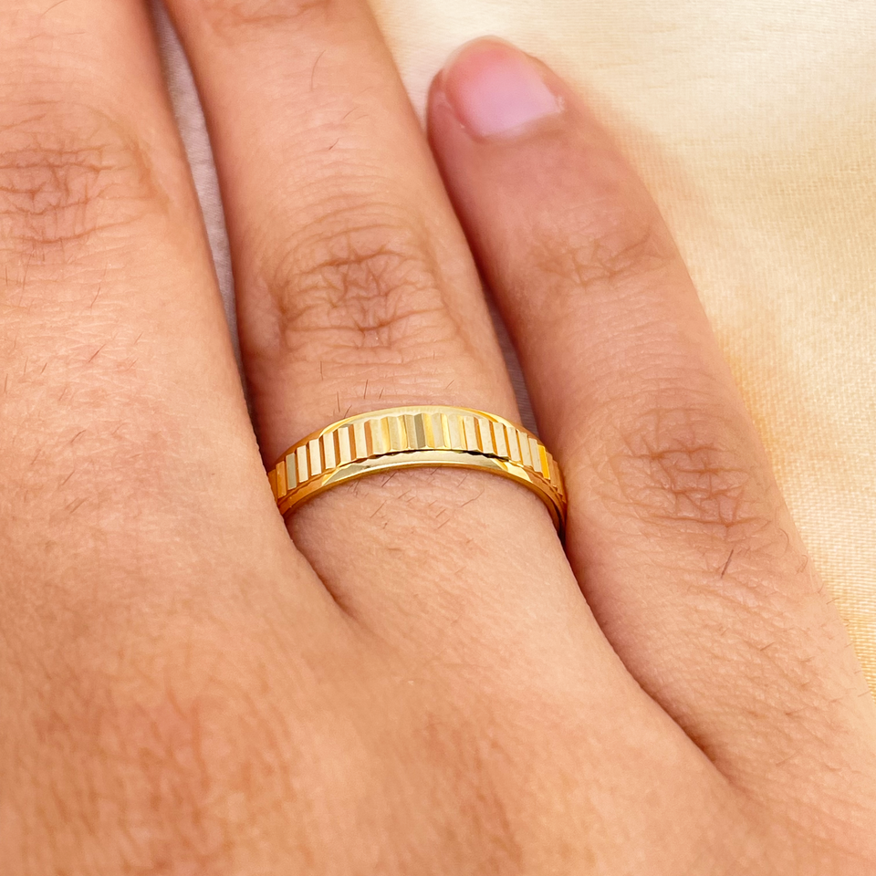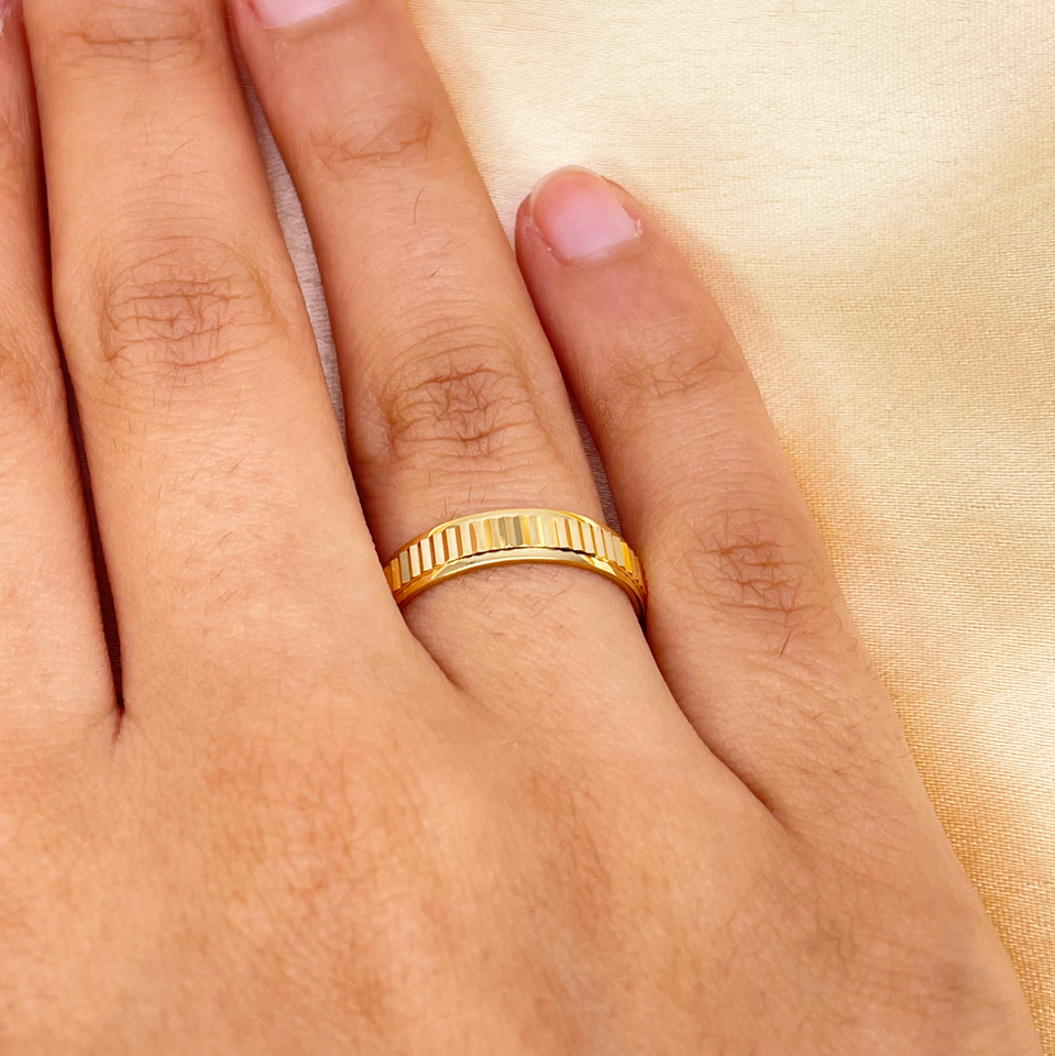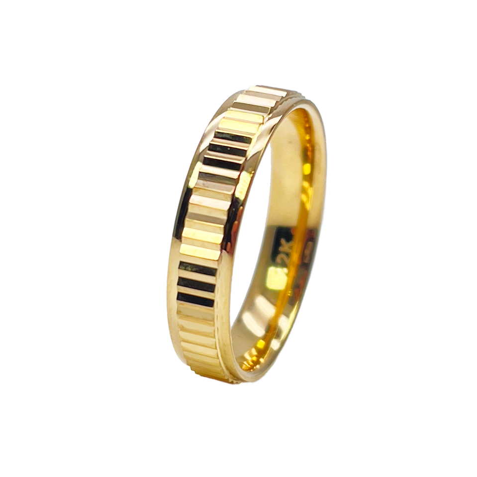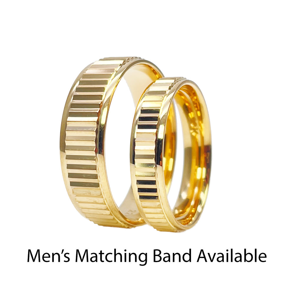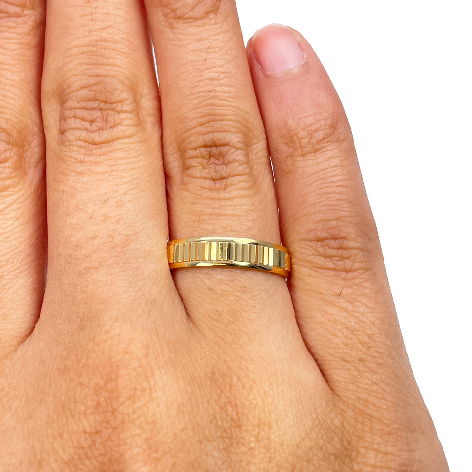 22ct Yellow Gold High Polished Edge Diamond Cut Women's Wedding Band 4mm